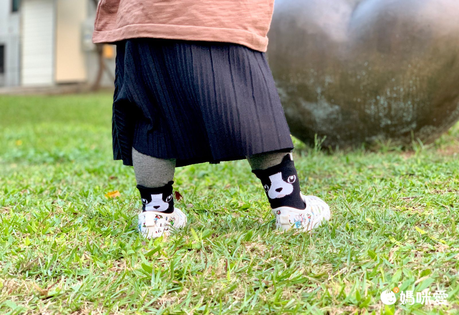 媽咪也覺得襪襪很好搭配,看紜紜多開心~前方是基本素色,轉過來就一秒萌翻全場