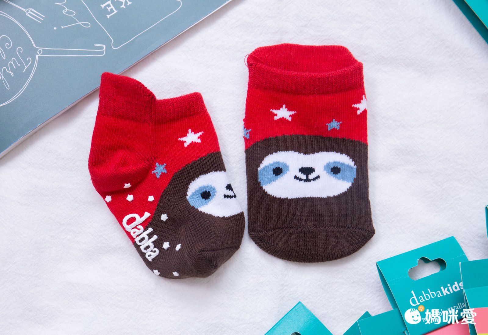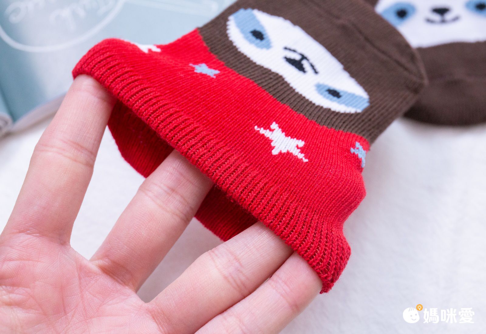 紜紜看見顏色鮮明的可愛圖案,馬上大喊狗狗~讓紜媽覺得很開心,她真心喜歡這些小襪子