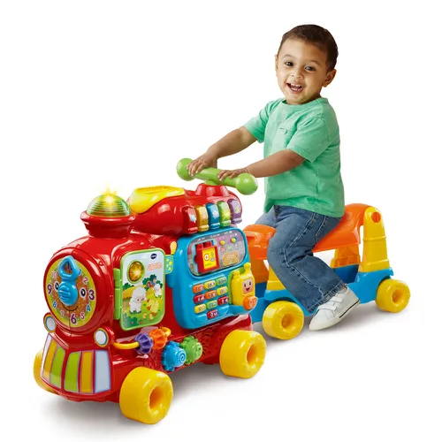 滿 1 歲之後,火車可以讓孩子當騎乘玩具,也能把火車頭和座椅拆分開來玩,火車頭讓孩子推著走,座椅可以當孩子專屬的拖車 (當學步車/滑步車時,切記爸媽一定要陪同在孩子身旁,確保安全!)