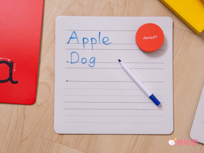練習完之後,可以直接把字母卡,筆以及板擦收進收納櫃裡,非常方便,也不易弄丟唷!