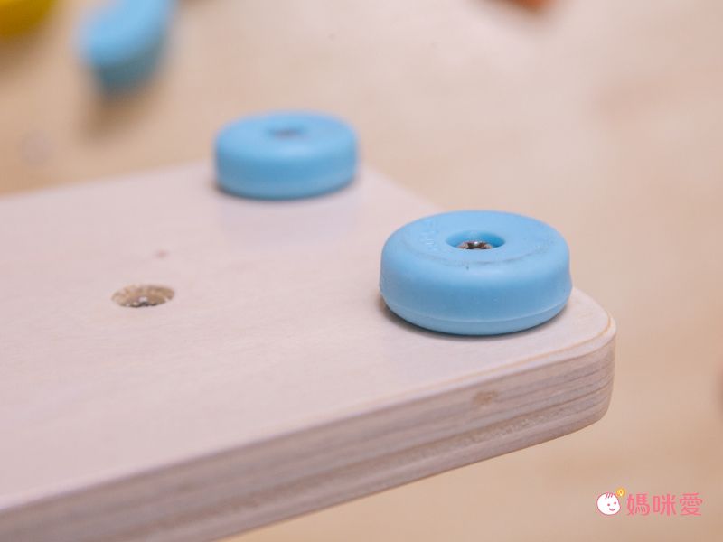 雖然名字是穿線桌,但有插木樁和穿線兩種玩法,一開始可以先從簡單的木樁開始玩,等孩子熟悉之後再來挑戰穿線。