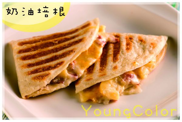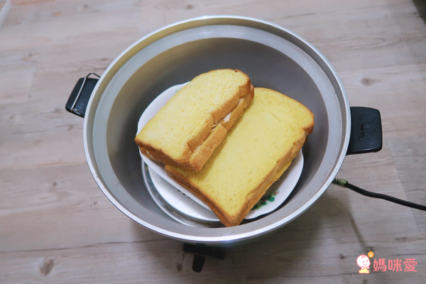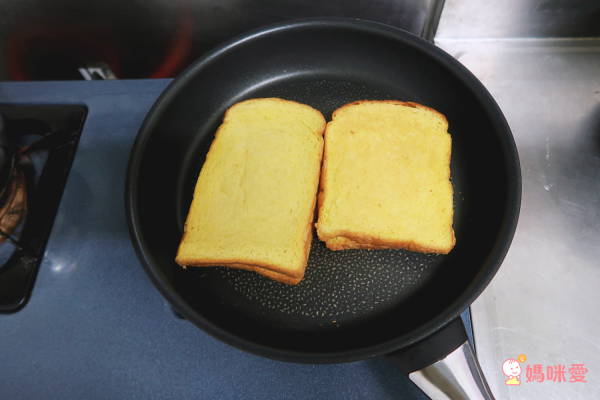 (吐司表面已塗有無鹽奶油,不用在平底鍋上再加油)