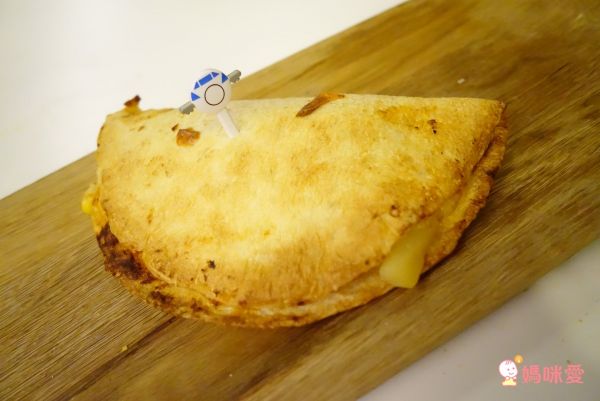 獨家的特製餅皮,對摺設計方便媽咪們直接用煎的,餡料多到不小心就會爆出來!一樣記得先用微波一分鐘,就可以煎烤囉!