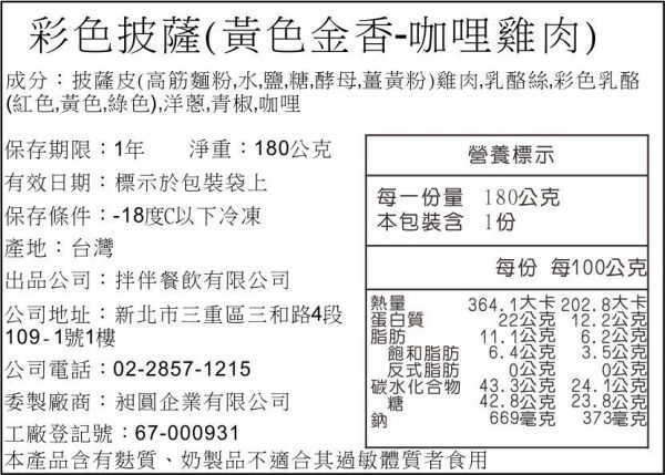 「咖哩雞肉」採用薑黃餅皮,加上南洋咖哩、去骨雞腿肉、香甜洋蔥、青椒洋蔥、彩色乳酪,金黃色澤看起來超可口!