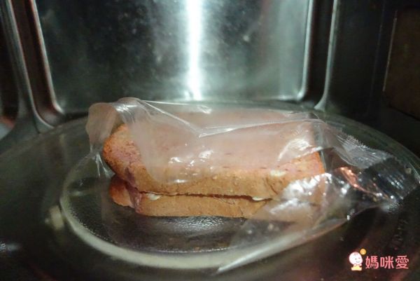 STEP1:吐司直接進微波爐,本包裝為可微波之材質,微波至起司融化即可