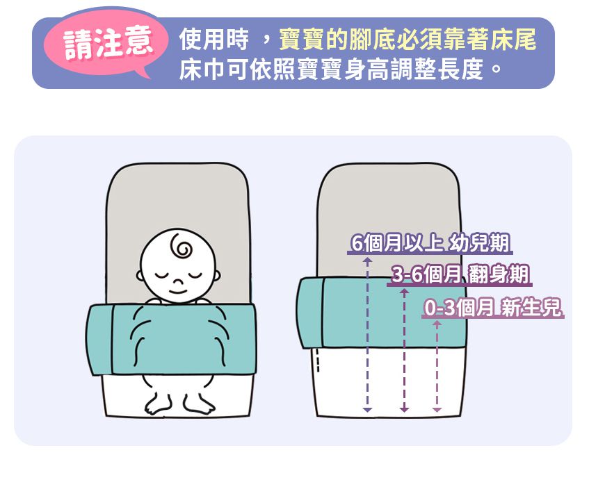 嫩嬰時期 :適當的壓力能讓寶寶睡的更安穩,也不容易驚嚇反應!寶寶的小手可以固定在床巾裡面自由活動,又不至於讓雙手完全動不了,不像一般包巾一樣捆覆起來。