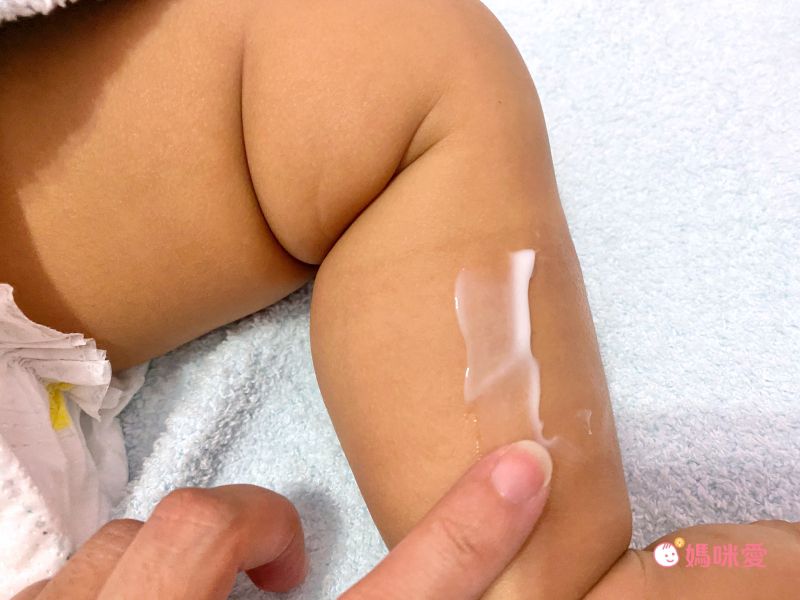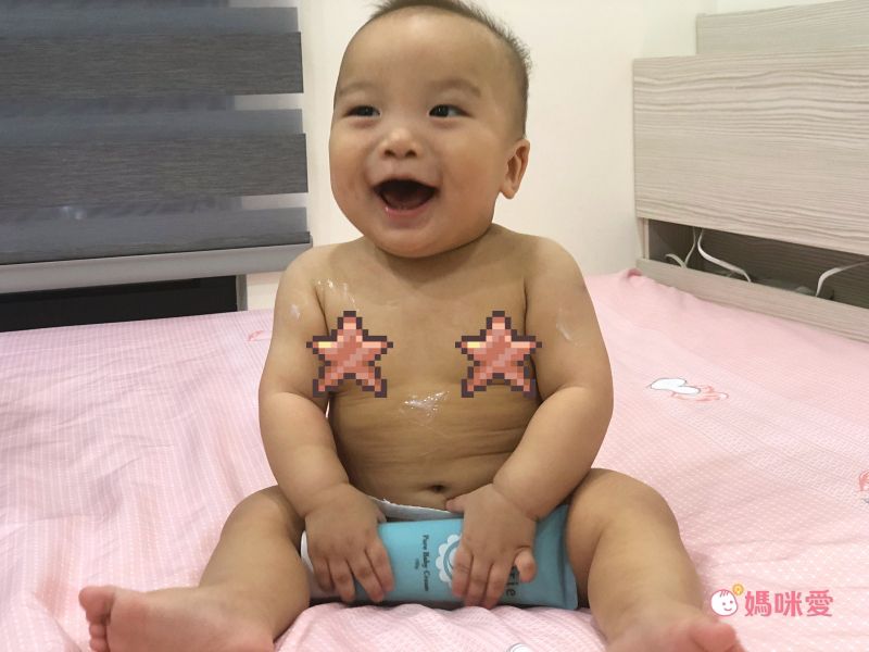 趁著洗完澡就趕緊幫寶寶擦上,保濕又鎖水,非常好推也很快吸收,對於兒子處於迅雷不及掩耳就會爬走的年齡來說,真的是超好用!