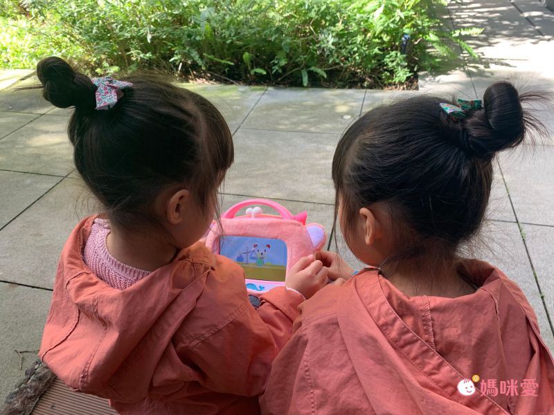 姊妹倆現在走到哪,都不忘記要帶上小鯨魚唱跳機,外出隨時隨地都能打開來學習或唱卡拉 OK。