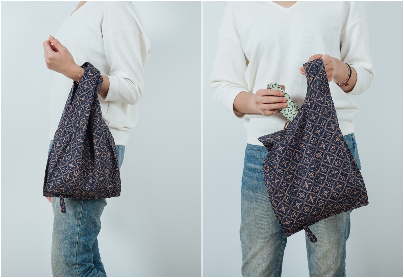 可以捲起來放在包包裡,輕巧又不佔空間,攤開就是一只簡單好用的提袋