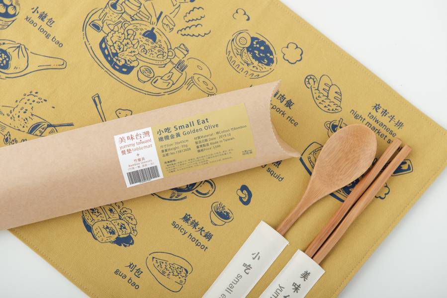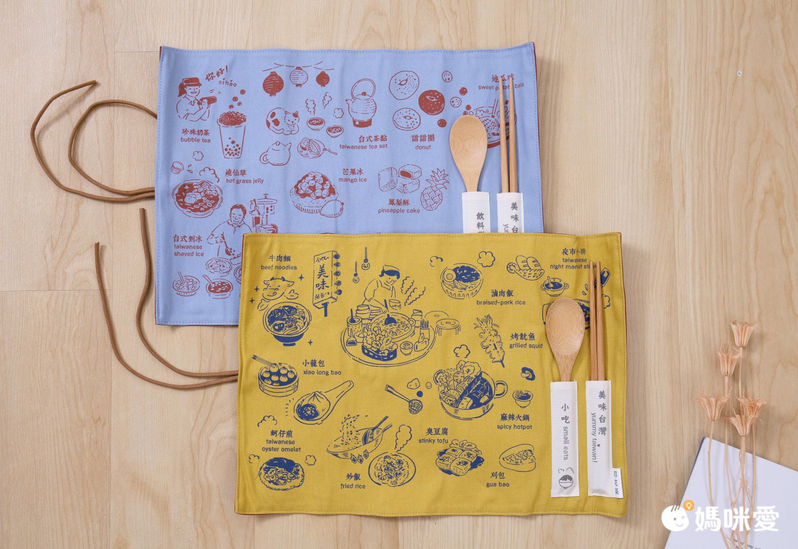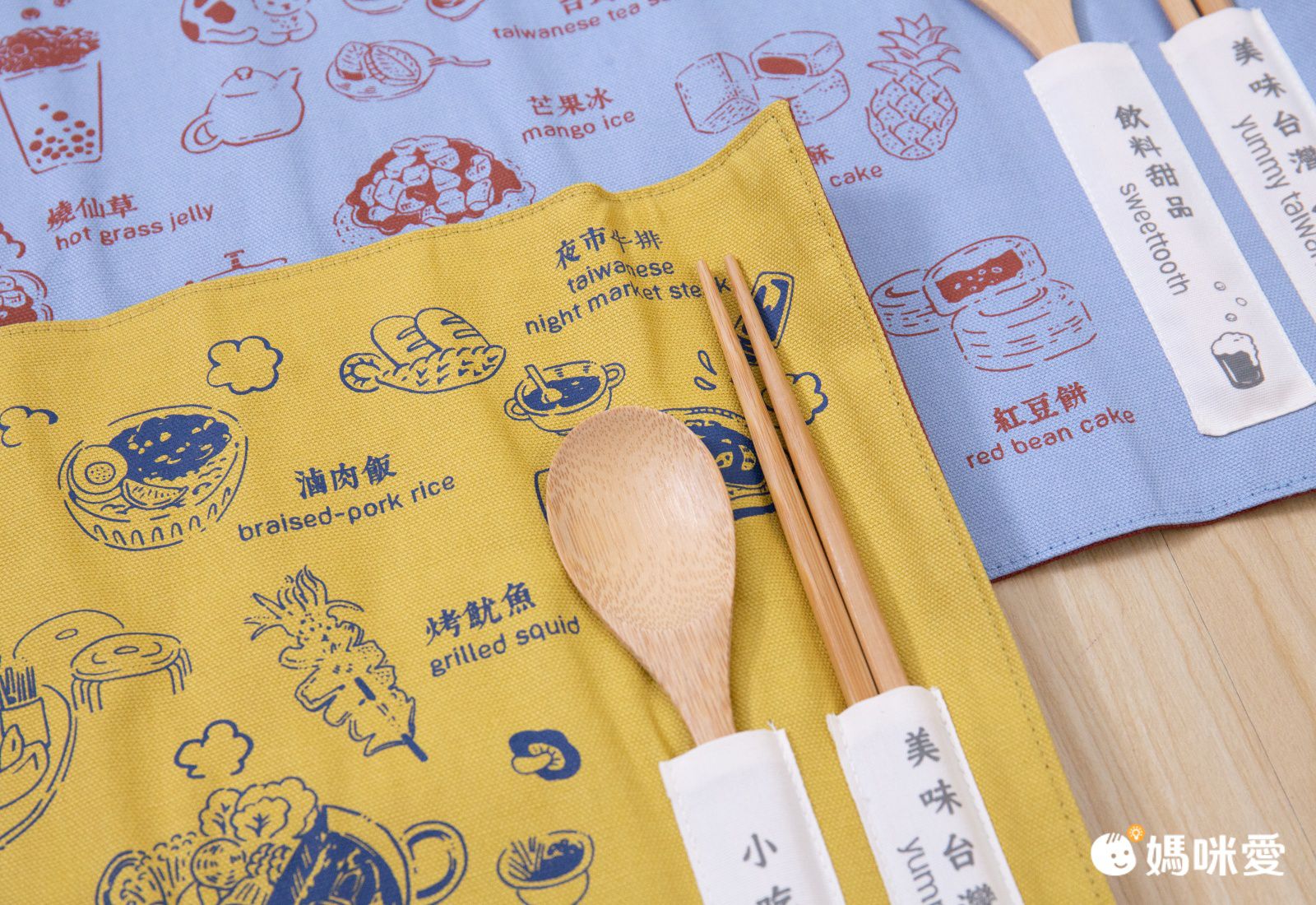 每塊餐墊都附上竹食器(湯匙、筷子),髒了直接水洗,這個固定空間自己換成叉子或鐵湯匙之類的也很適合