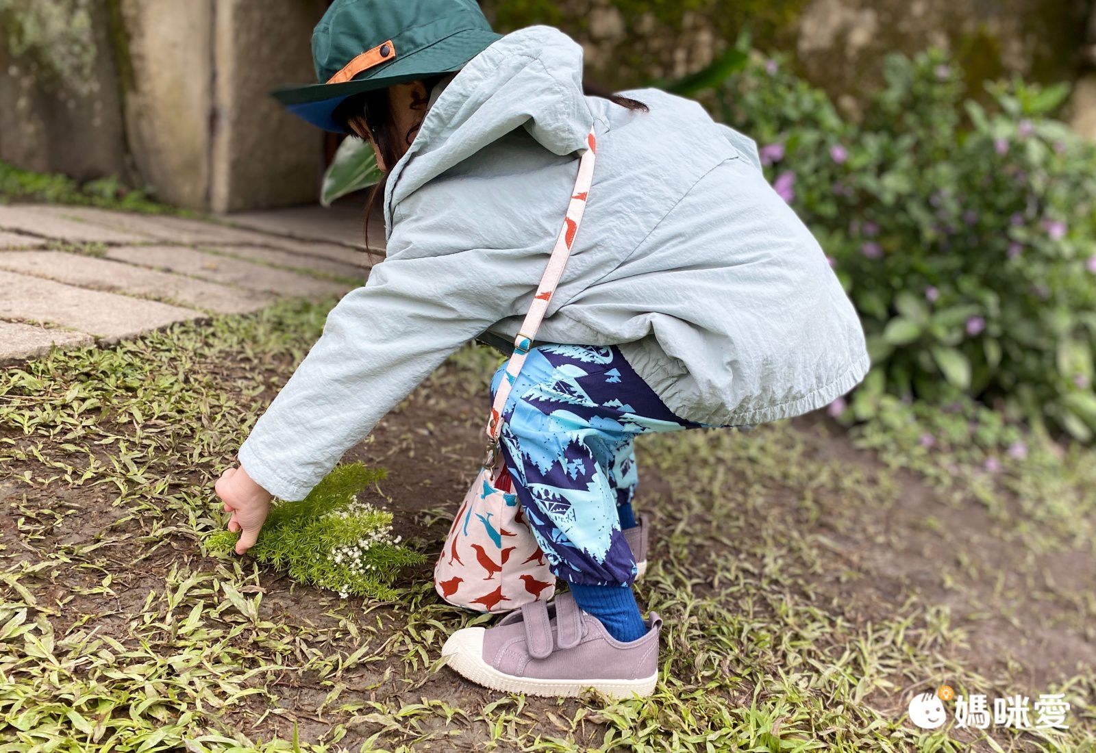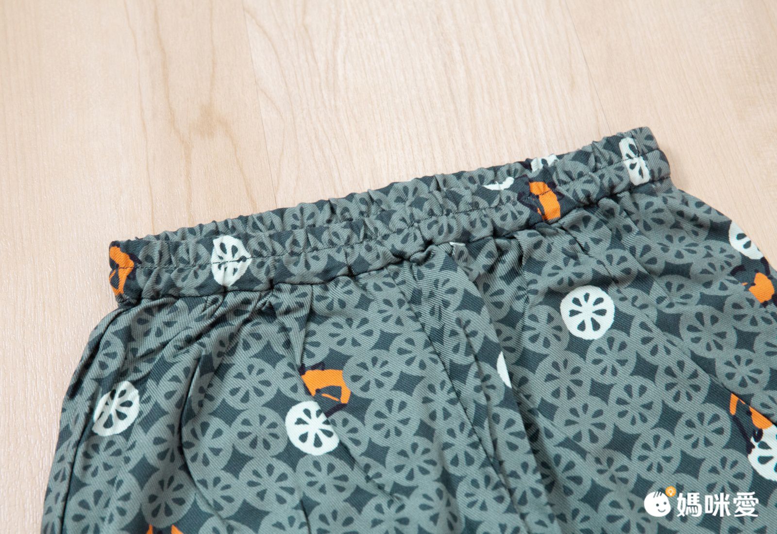 另外褲頭打折鬆緊帶,讓褲子更好穿脫不惱人,側邊雙口袋多了點巧思與方便,也夠深能隨手放進小東西,例如她愛撿的石頭或樹葉。(翻白眼)