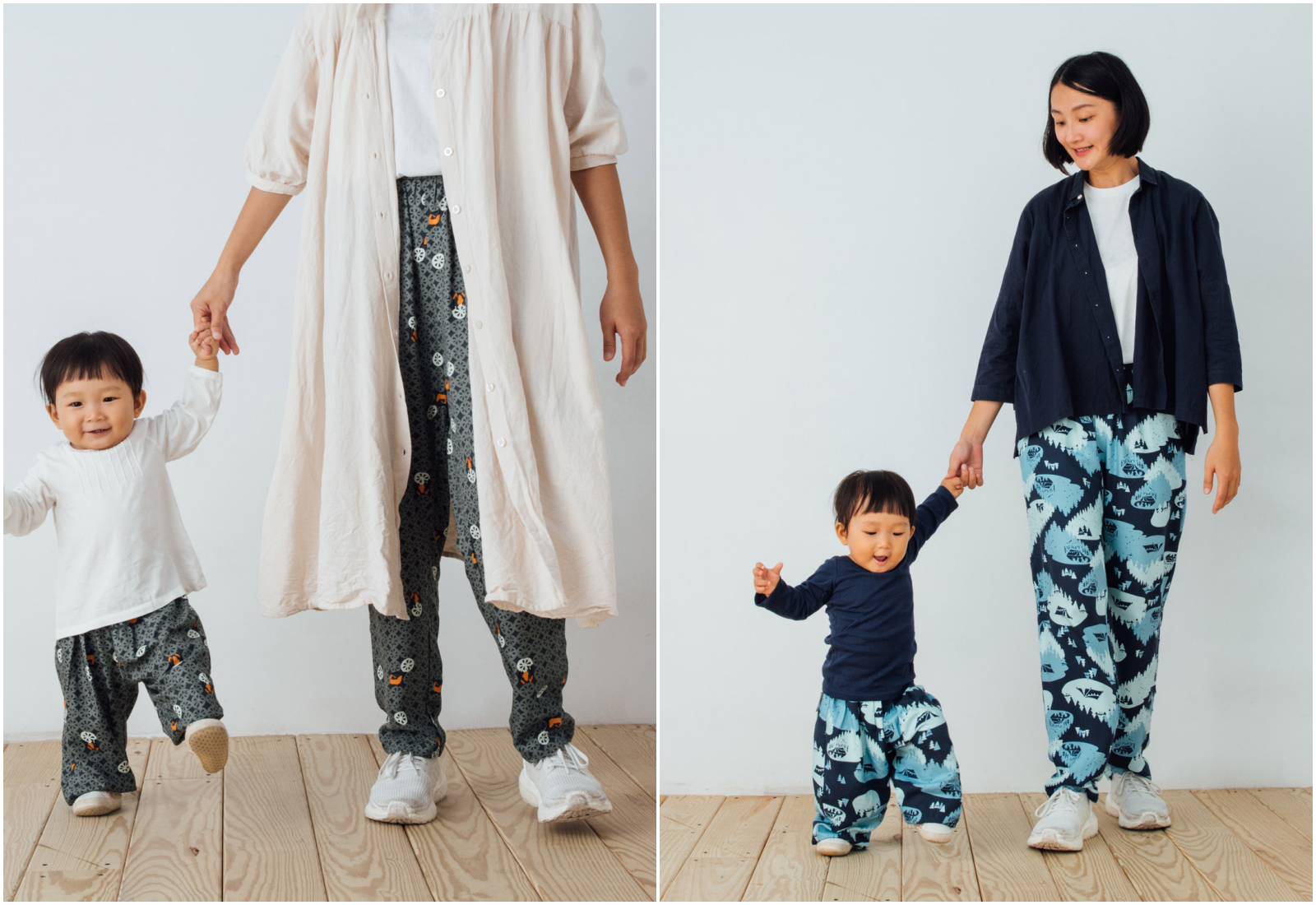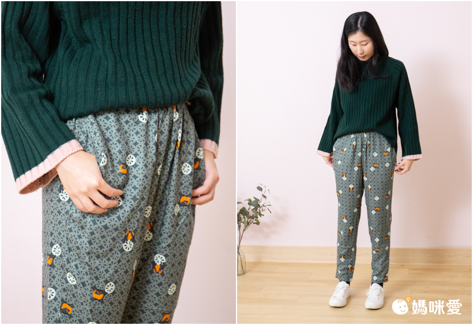 錐形褲讓媽媽跟孩子,都能穿的可愛又修飾身材,很適合媽媽我梨形下盤穩的體魄(哭哭),最棒當然是獨特森林童趣印花,好喜歡這樣ㄧ組親子褲,ㄧ起來搭配的氛圍。