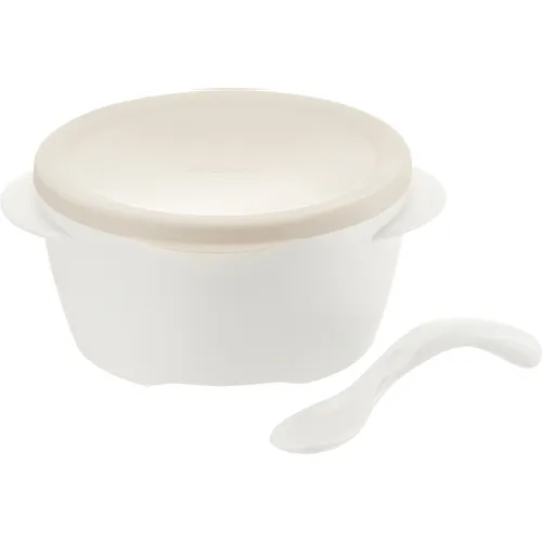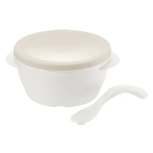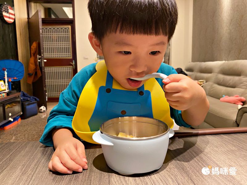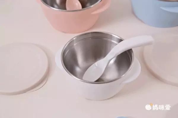 而且可拆式的不銹鋼碗可以直接放入電鍋加熱,超級方便的!餵食的湯匙前端是柔軟的材質,適合剛要學吃東西的小寶寶們🥰