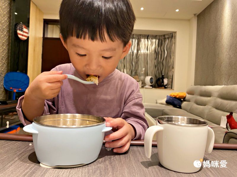用了食器吸盤後,湯匙、叉子就算沒拿穩也不會不小心飛到地上,真的好處理非常多,不但媽咪我能夠跟寶貝一起氣定神閒地吃飯,樂樂也更增添了自主吃飯的自信跟樂趣。