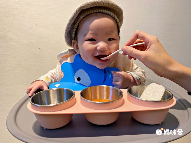 三格分裝設計讓副食品一次可以多樣變化及讓寶寶均衡攝取足夠營養,看~蛋妹笑得多開心!