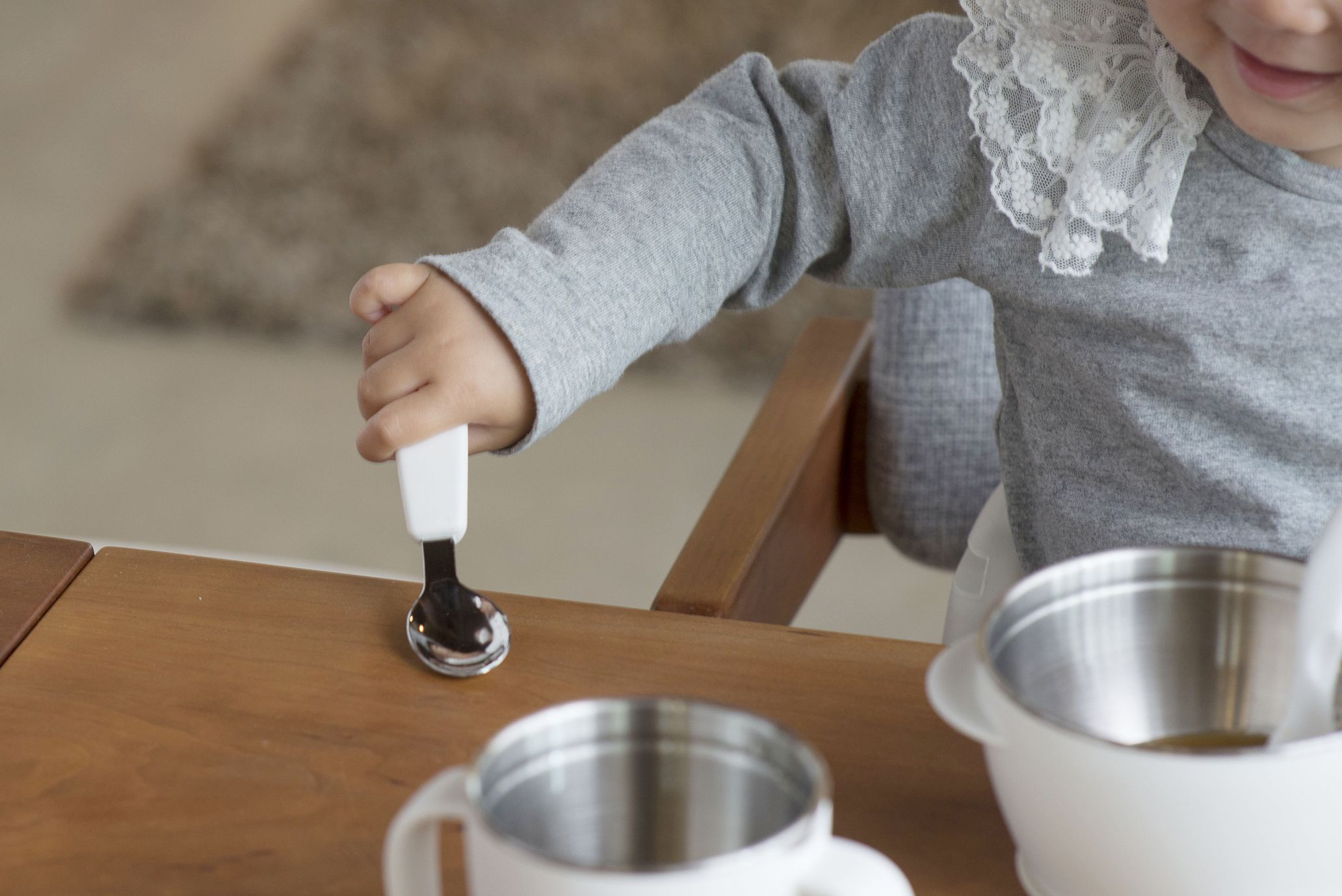 圓潤的握柄孩子很好抓握,而且湯匙、叉子前端有一些輕微的角度,讓孩子可以更準確的瞄準、撈取食物