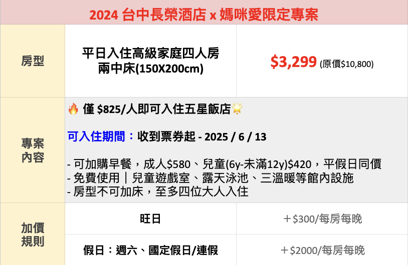 註:本加碼限「持媽咪愛3299住宿券(效期至2025/6/14)於期限內入住」方可享此升等優惠。