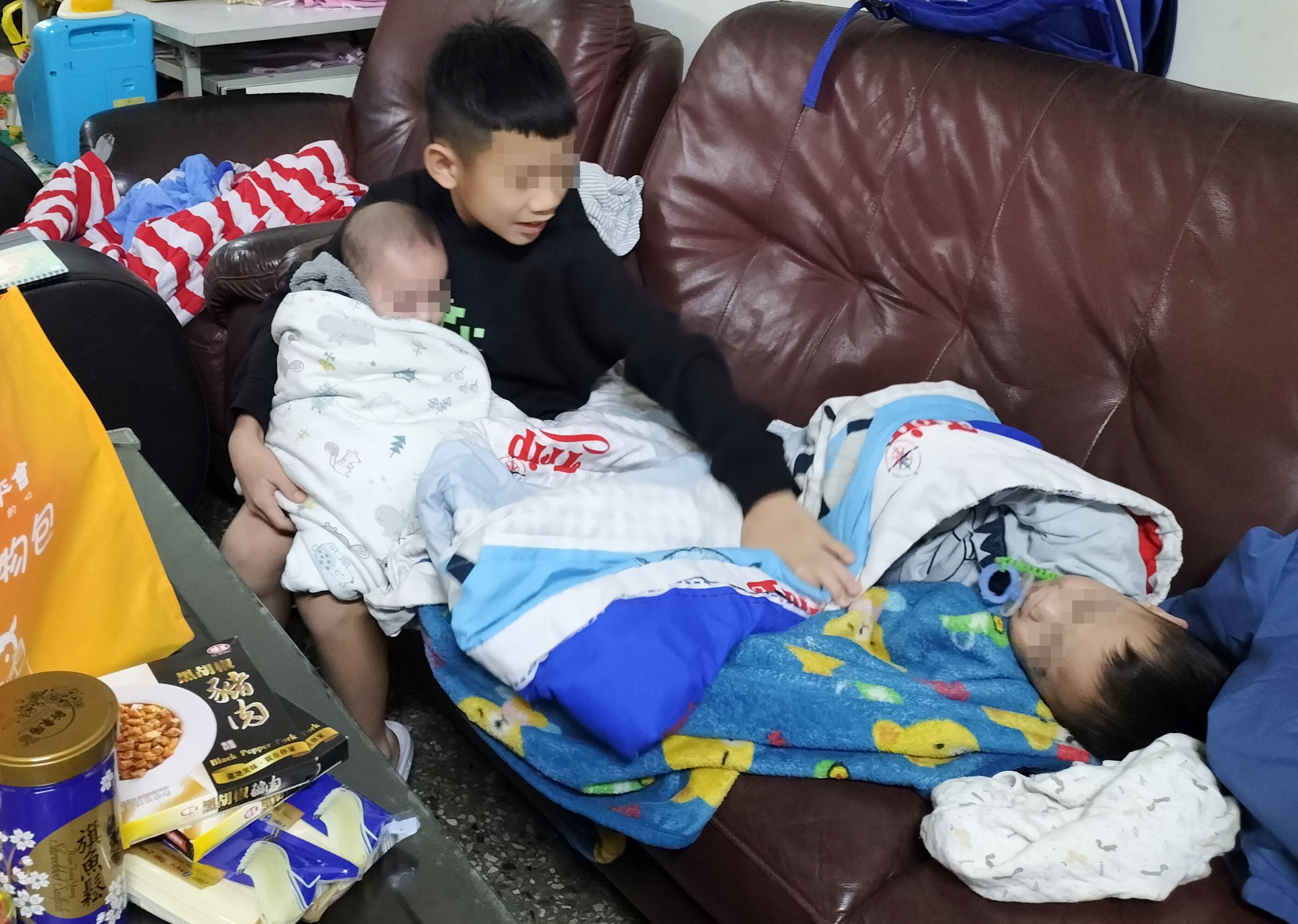 國小6年級的勇勇體型雖瘦小,卻是媽媽的得力幫手,是個貼心的孩子,會幫忙照顧2個年幼的弟弟。媽媽得身兼經濟和照顧孩子的責任,在家中剪檳榔、包檳榔以負擔家計,賺取微薄的收入,家中許多的開銷支出,讓媽媽壓力極大,就算有政府的中低收補助,但房租、水電、三餐、孩子的奶粉與尿布、學習費用…等林林總總加起來,都是無法省去又可觀的必要花用,讓媽媽一刻都不敢鬆懈,努力希望多做一點量,就能多一點收入。勇勇感受到媽媽說不出口的苦楚,在媽媽忙碌工作時,他則在旁邊安撫照顧幼幼班和4個月的弟弟,還可以協助家務,十足的大哥哥模樣。