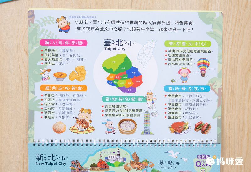 以知識性來講算是滿豐富的,還會介紹每個縣市的地理位置、人口數等等簡介,還會附上行政區域圖,如果是在學齡前「玩」過這本書,小學社會課肯定輕鬆許多,完全不用死背硬記,就能把台灣地理KO啦!