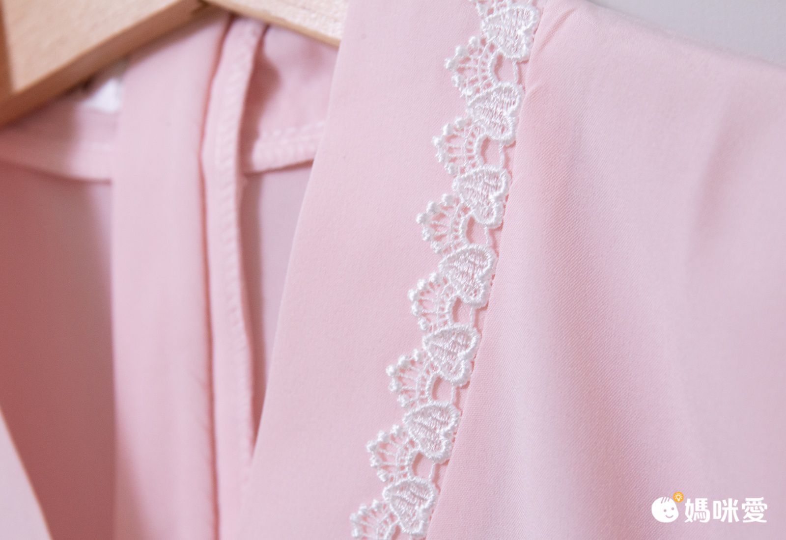 交叉的V領上點綴了愛心造型的蕾絲,是讓人看了就心動的小細節