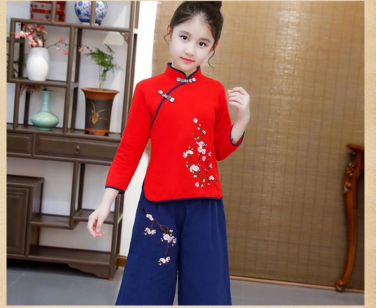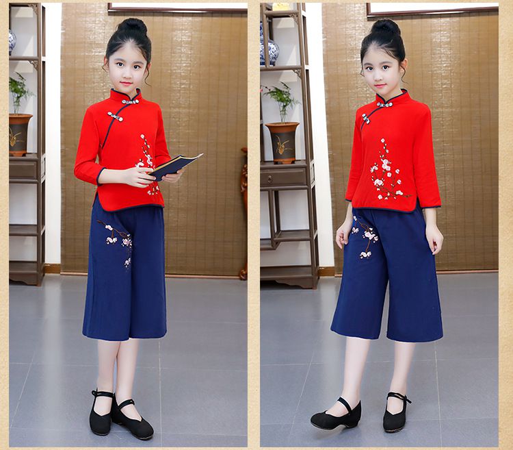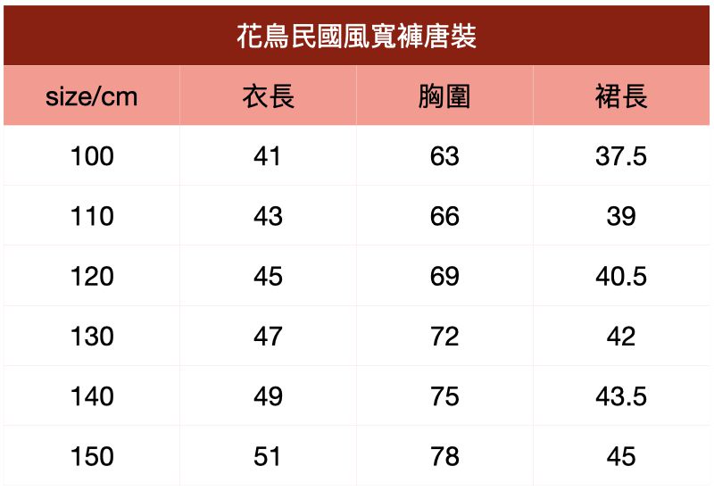 附上尺寸表給媽咪們參考~花鳥民國風寬褲唐裝