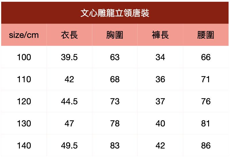 附上尺寸表給媽咪們參考~文心雕龍立領唐裝