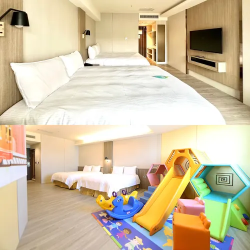 小提醒:親子房型坪數較大約有11坪,且可於訂房時向飯店預訂嬰兒沐浴澡盆組 (澡盆、小椅凳、水勺)、嬰兒床圍護欄、嬰兒床 (適用身高100公分以內),數量有限建議提前預訂(房型無浴缸)。