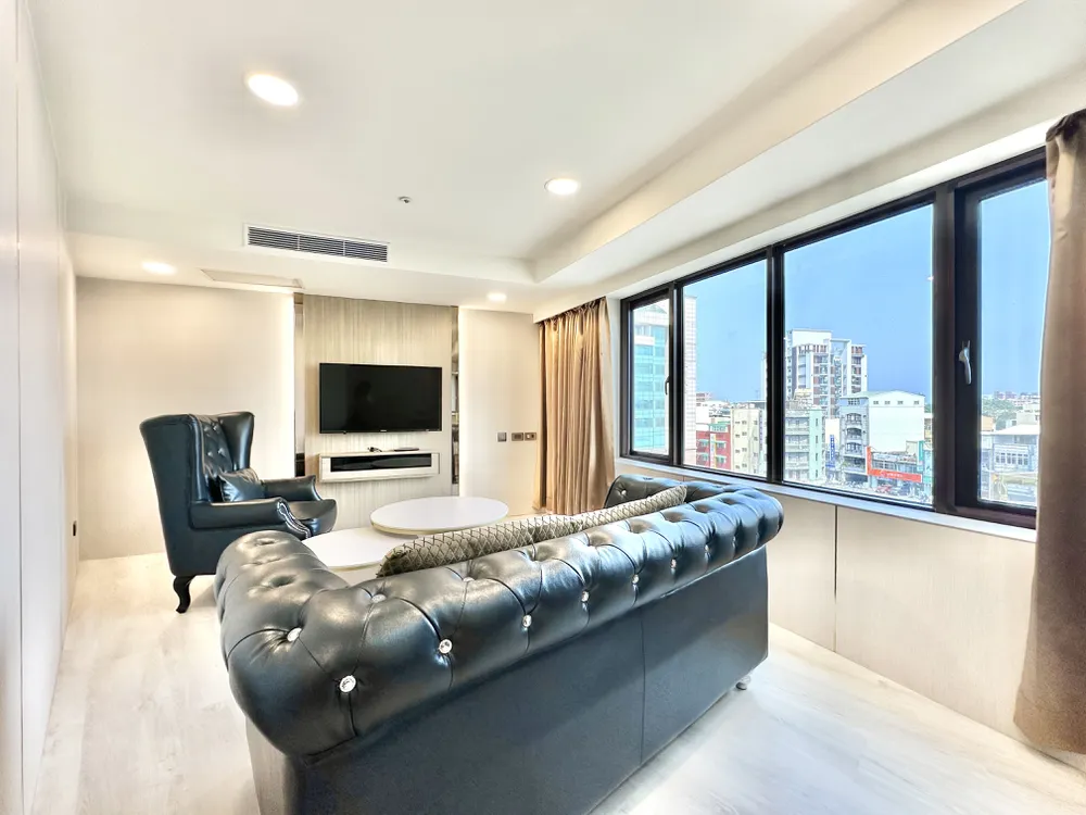 梳妝台與個人沙發擺設在靠窗處,微微自然光往房內灑,慵懶的氣氛一覽無遺。