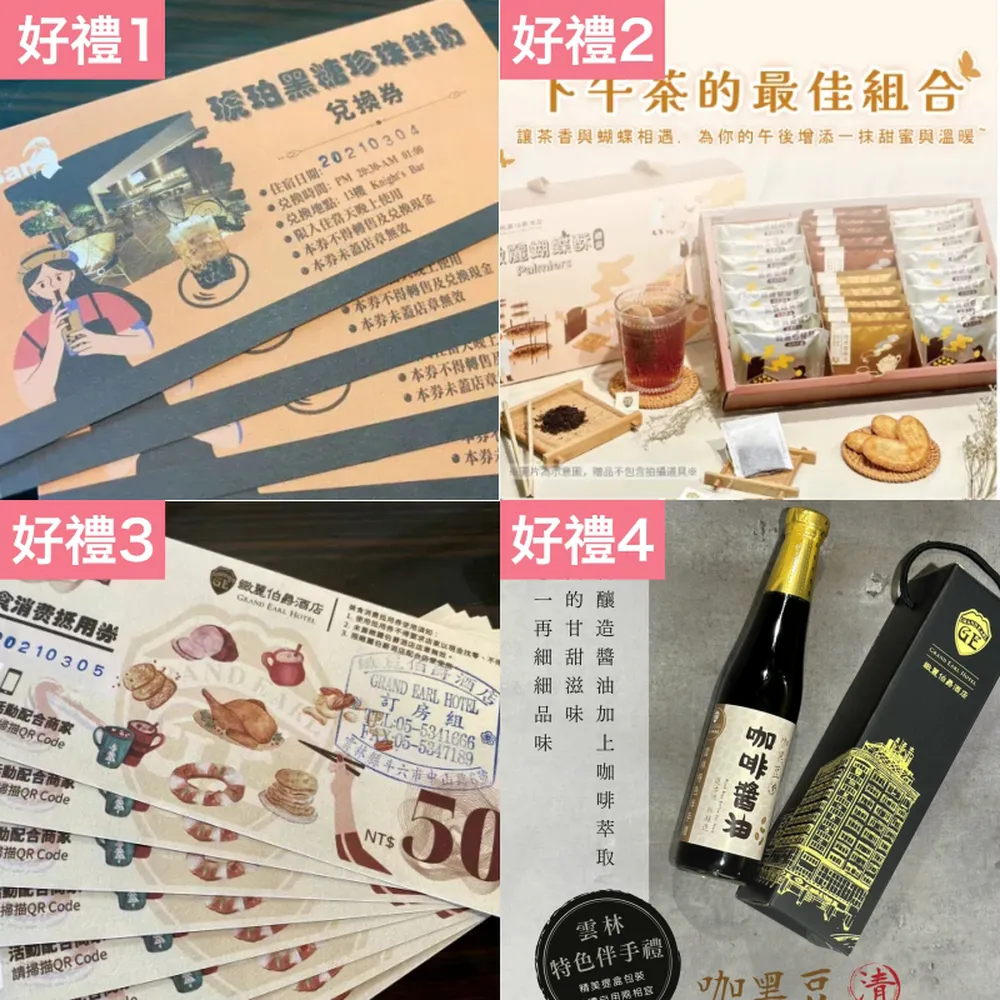 註 4: 本專案伴手禮皆為入住時,由飯店現場贈送,其中黑糖珍奶要在櫃檯領券後,至飯店頂樓酒吧兌換。