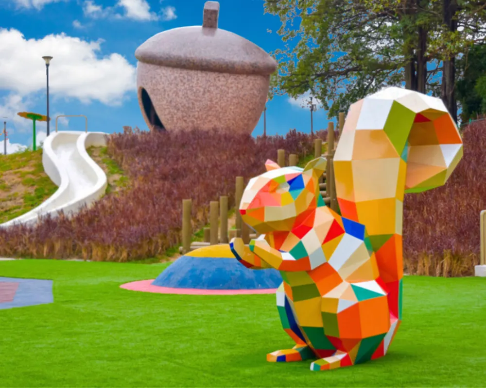斗六膨鼠森林公園是雲林最具代表性的「全齡化」特色公園,前身為斗六環保運動公園,經活化改造後,成為佔地約8公頃、以松鼠 (台語:膨鼠) 為主題的城市綠肺。公園內保留了豐富的喬木與灌木植栽,為雲嘉地區常見的赤腹松鼠提供理想的棲地,是近距離觀察城市生態的好機會。這裡不只是散步休憩的場所,更是結合生態、教育與休閒的親子共融樂園,幸運的話還能遇見可愛的赤腹松鼠!