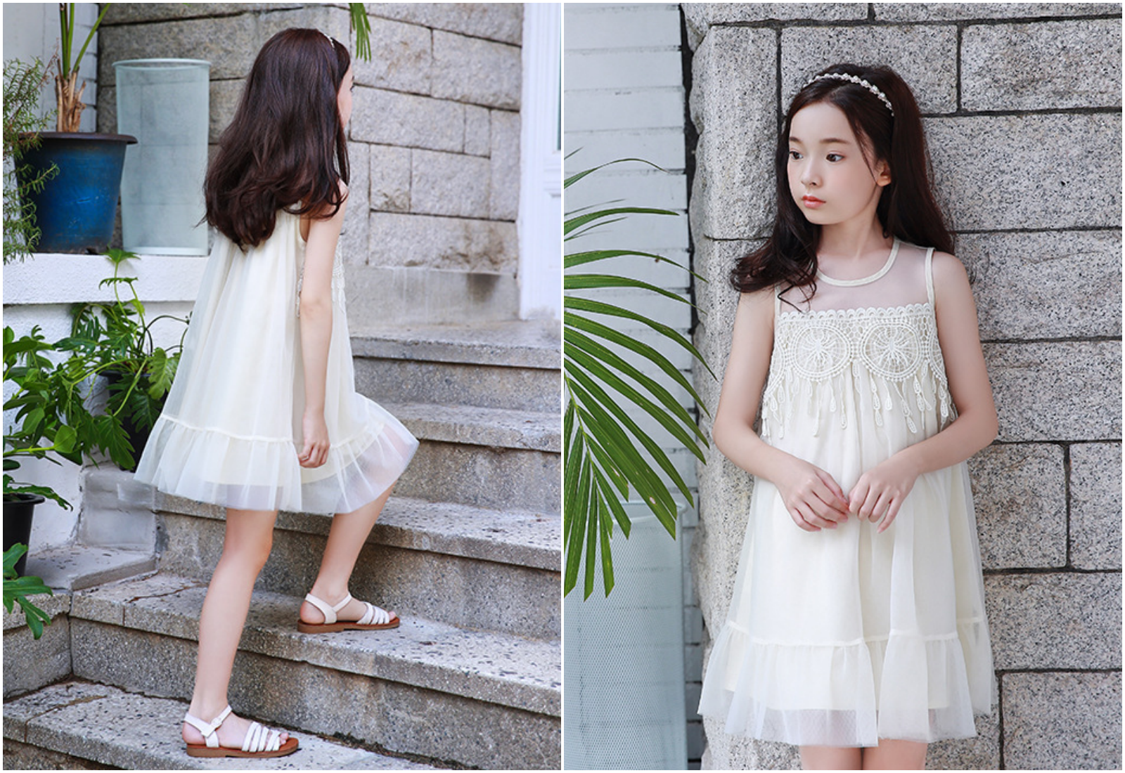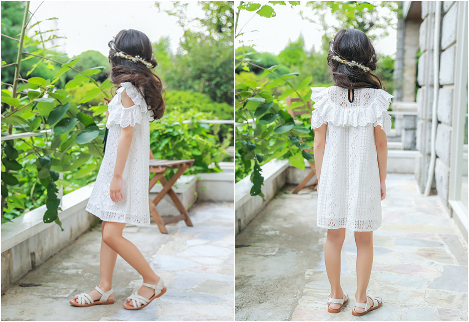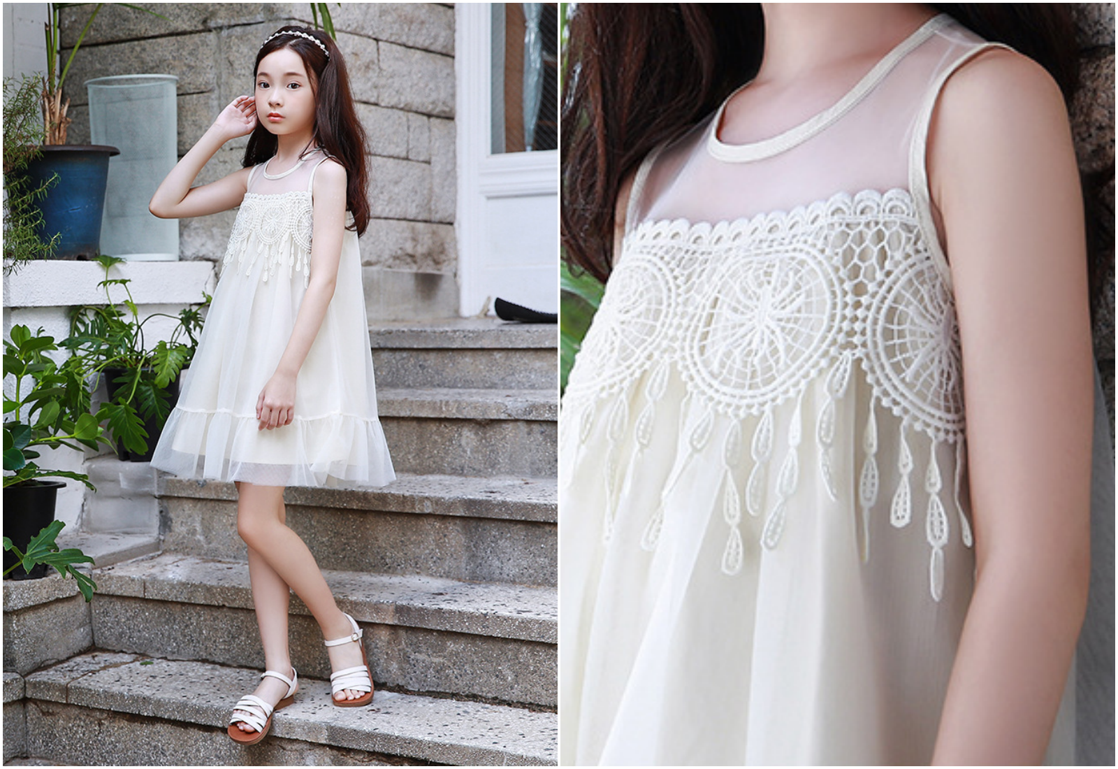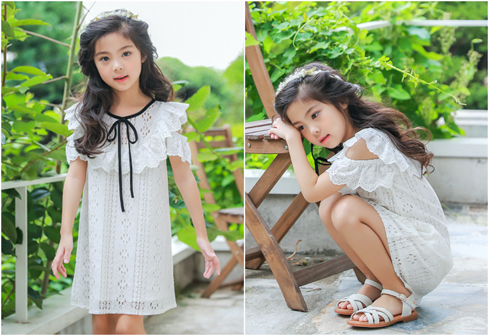 優雅蕾絲加上有點弧度的裙擺,隨著孩子走路跑跳擺動,太仙啦~