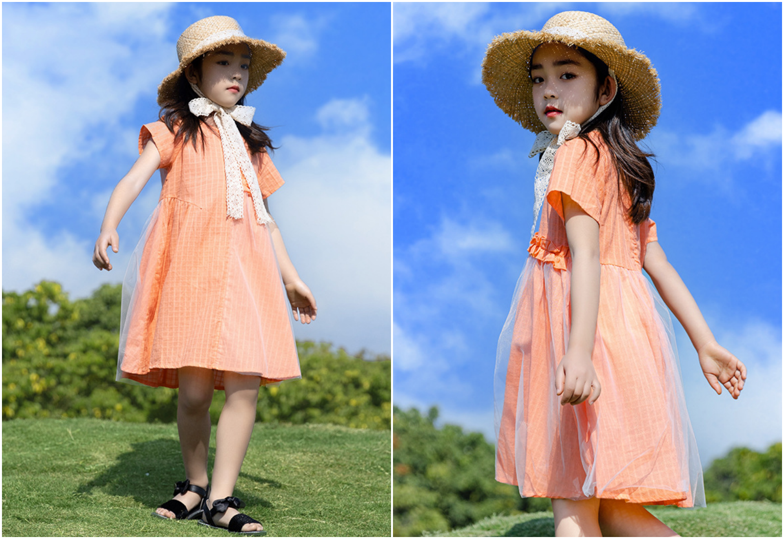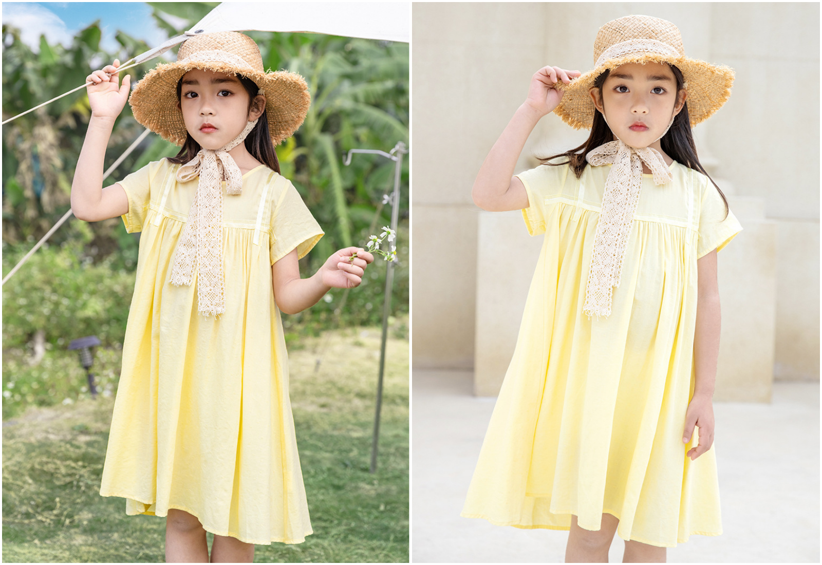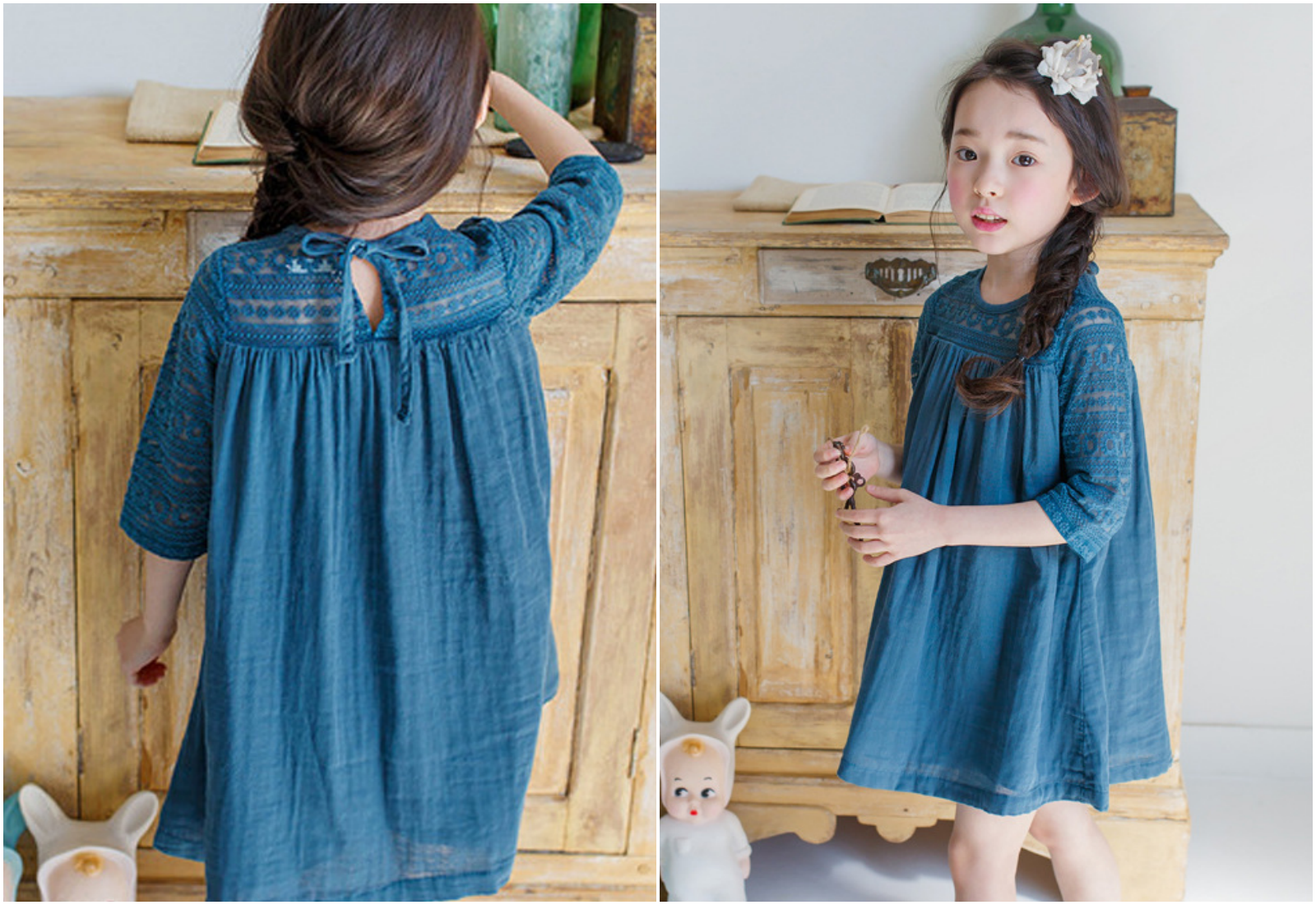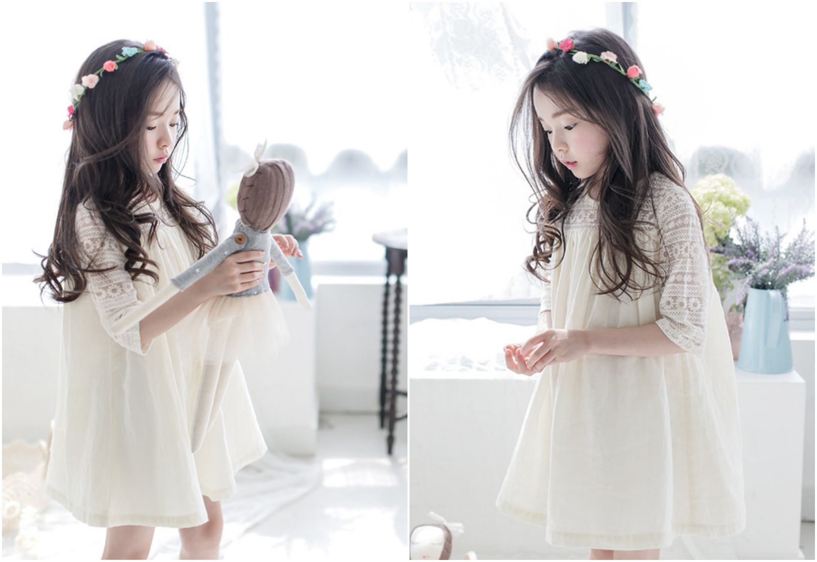 優雅蕾絲加上有點弧度的裙擺,隨著孩子走路跑跳擺動,太仙啦~