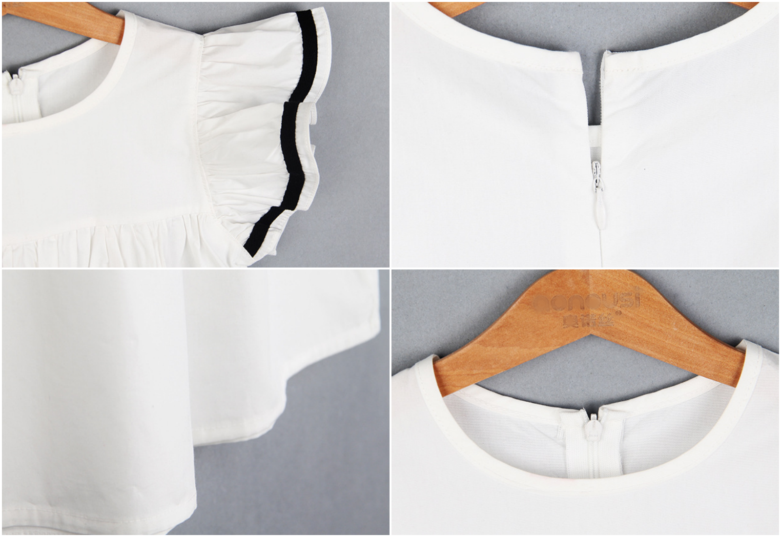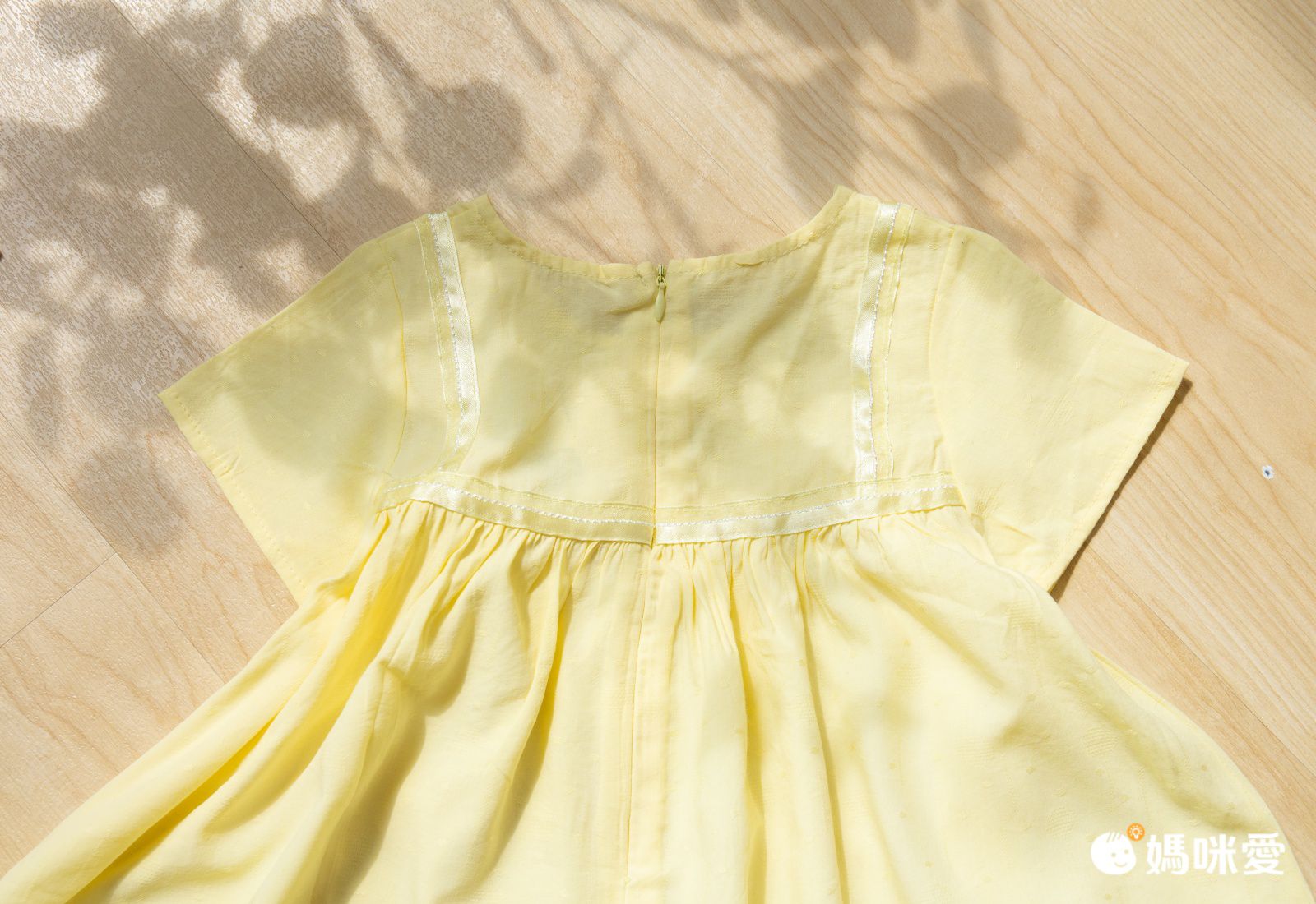 後方使用隱形拉鍊設計,胸前的抓皺跟飛飛袖相互呼應