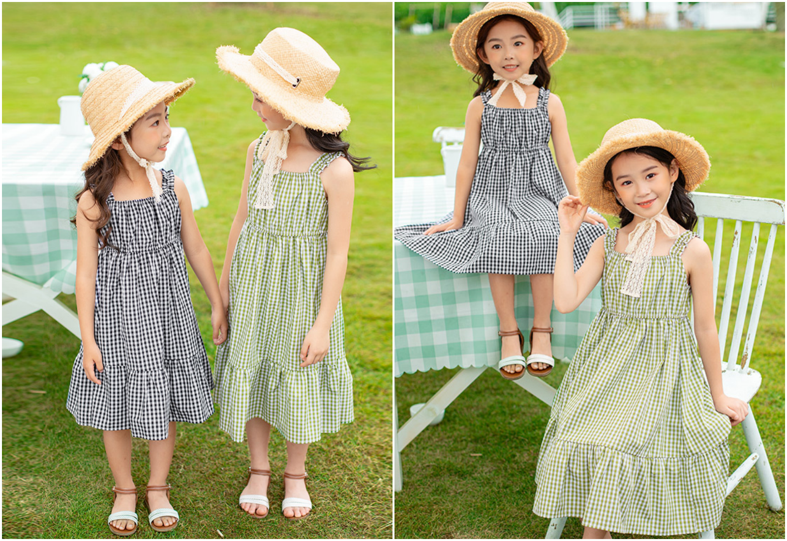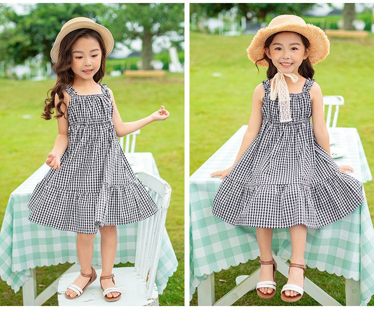 小格紋吊帶裙洋裝