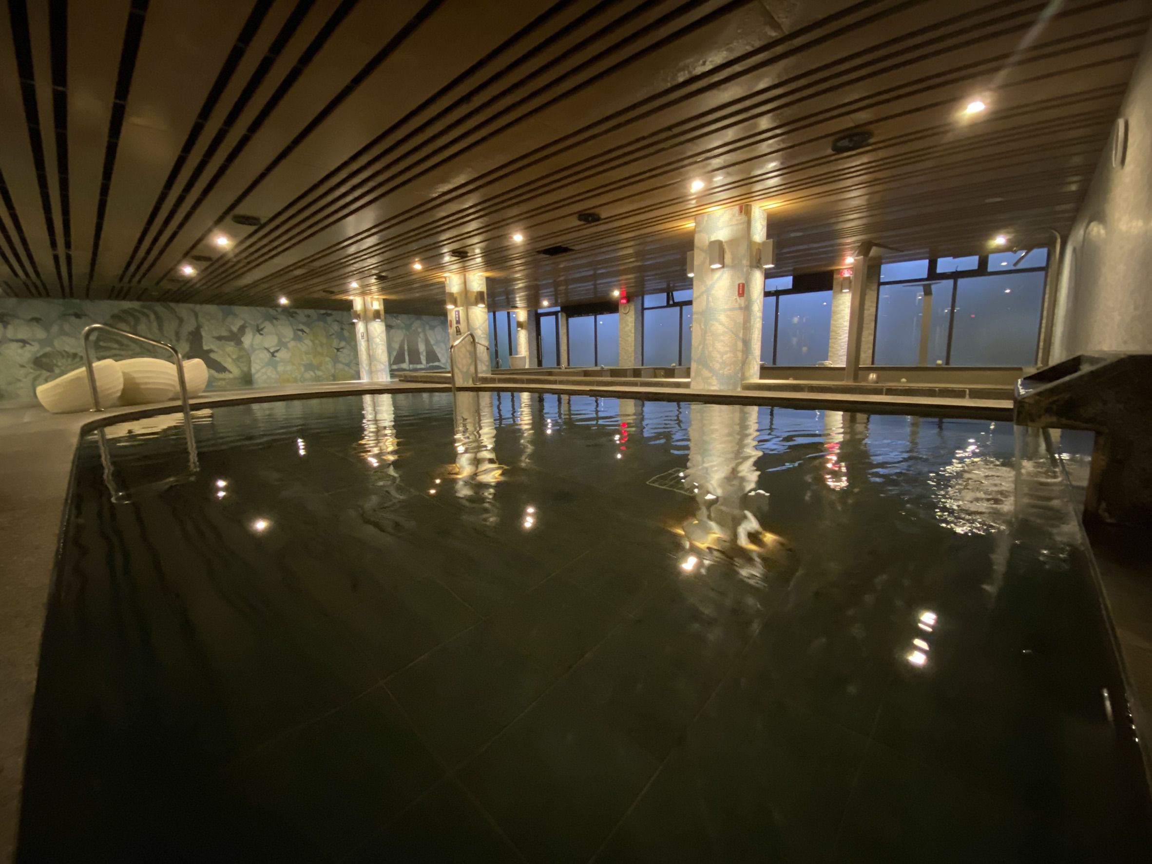 來到這裡,不僅可徜徉大海的寬廣,也能享受放鬆的溫泉,福隆福容大飯店擁有台灣唯一的 「氯化物氫鹽泉」,稀有特殊泉質,酸鹼適中,放鬆身心靈,泡湯完皮膚也會有古溜古溜的感覺!三溫暖內設大眾溫泉池,舒壓冷熱池,烤箱室,氣泡池,站/坐式淋浴等。活化全身細胞,促進血液循環,提升免疫力,放鬆身心靈。