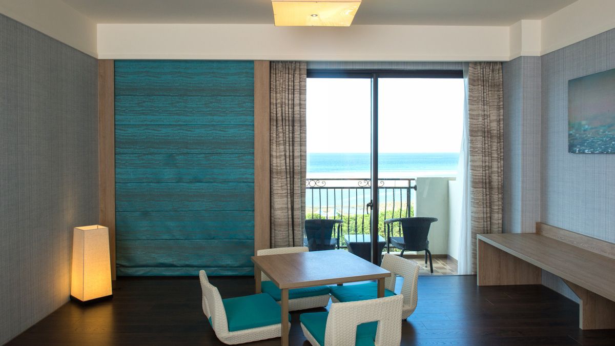 浴室有獨立淋浴空間,外加小客廳設計為日本和式的感覺,搭配上陽台外山林景色,讓人好想坐在藤椅上,邊喝咖啡一邊欣賞浪漫海景。