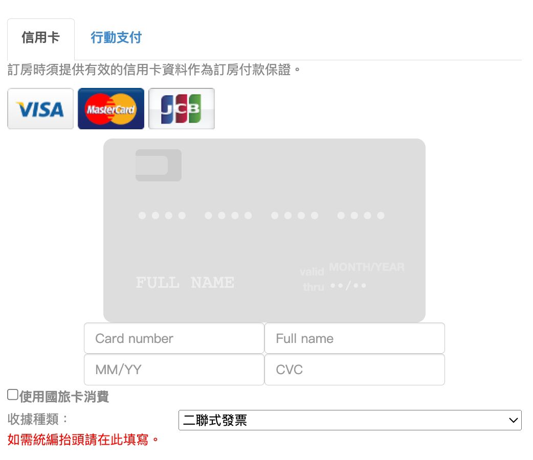 4. 支付訂金,可使用信用卡、國旅卡、或是行動支付Line Pay進行付款。