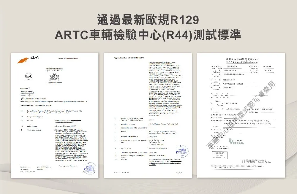 通過國家CNS、歐盟標準、車輛檢驗中心測試,嚴格把關,守護寶貝乘車安全的頂級汽座!