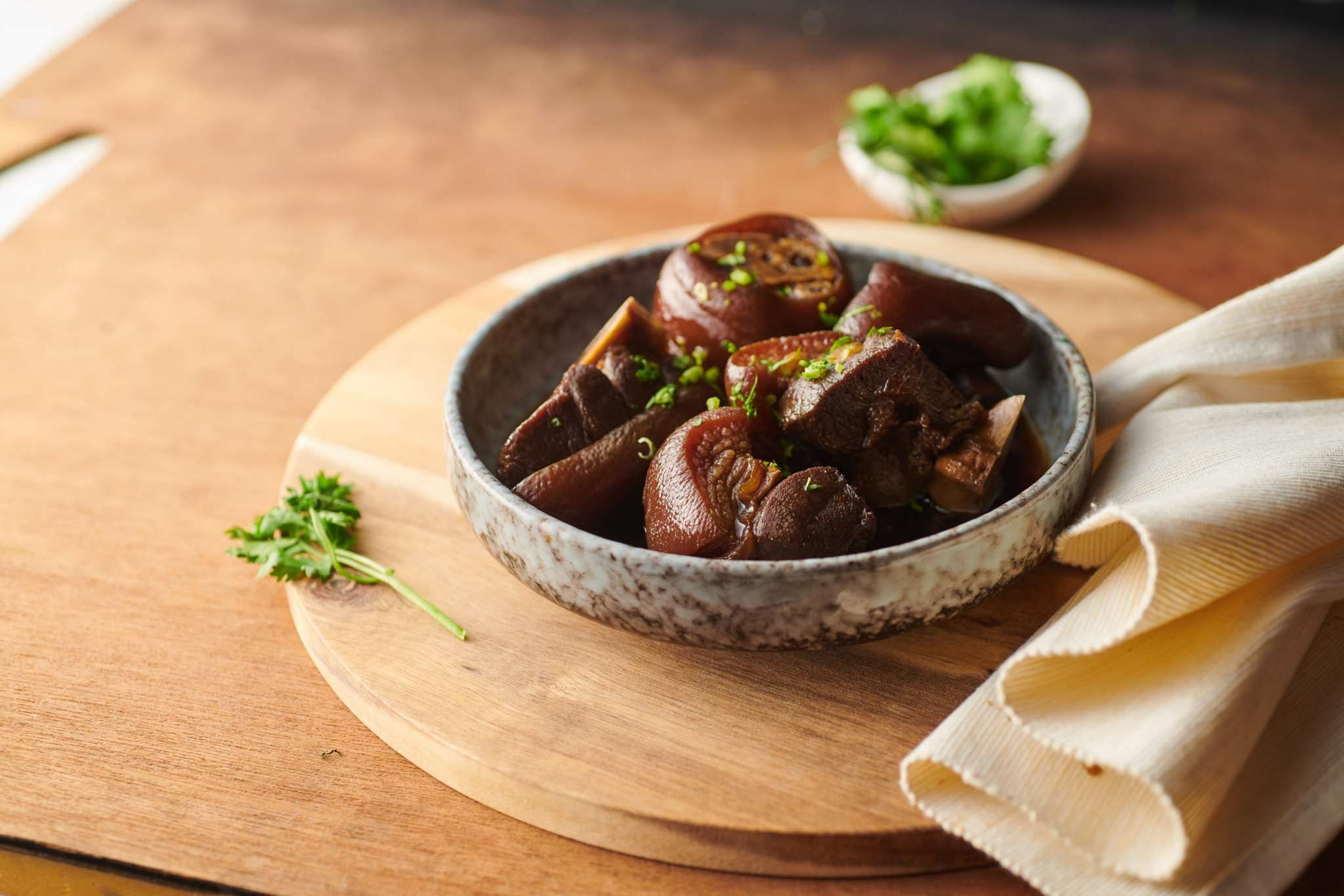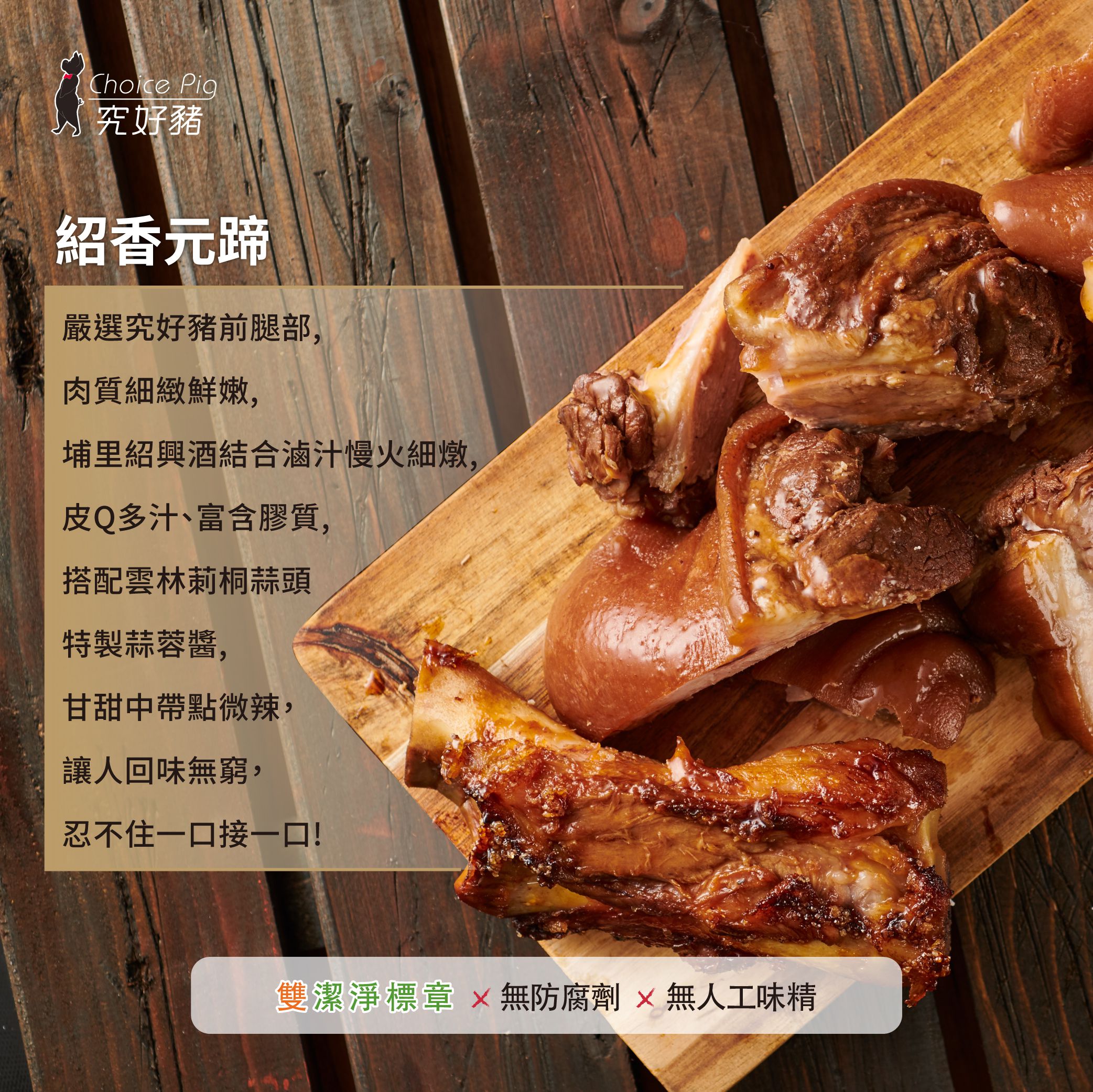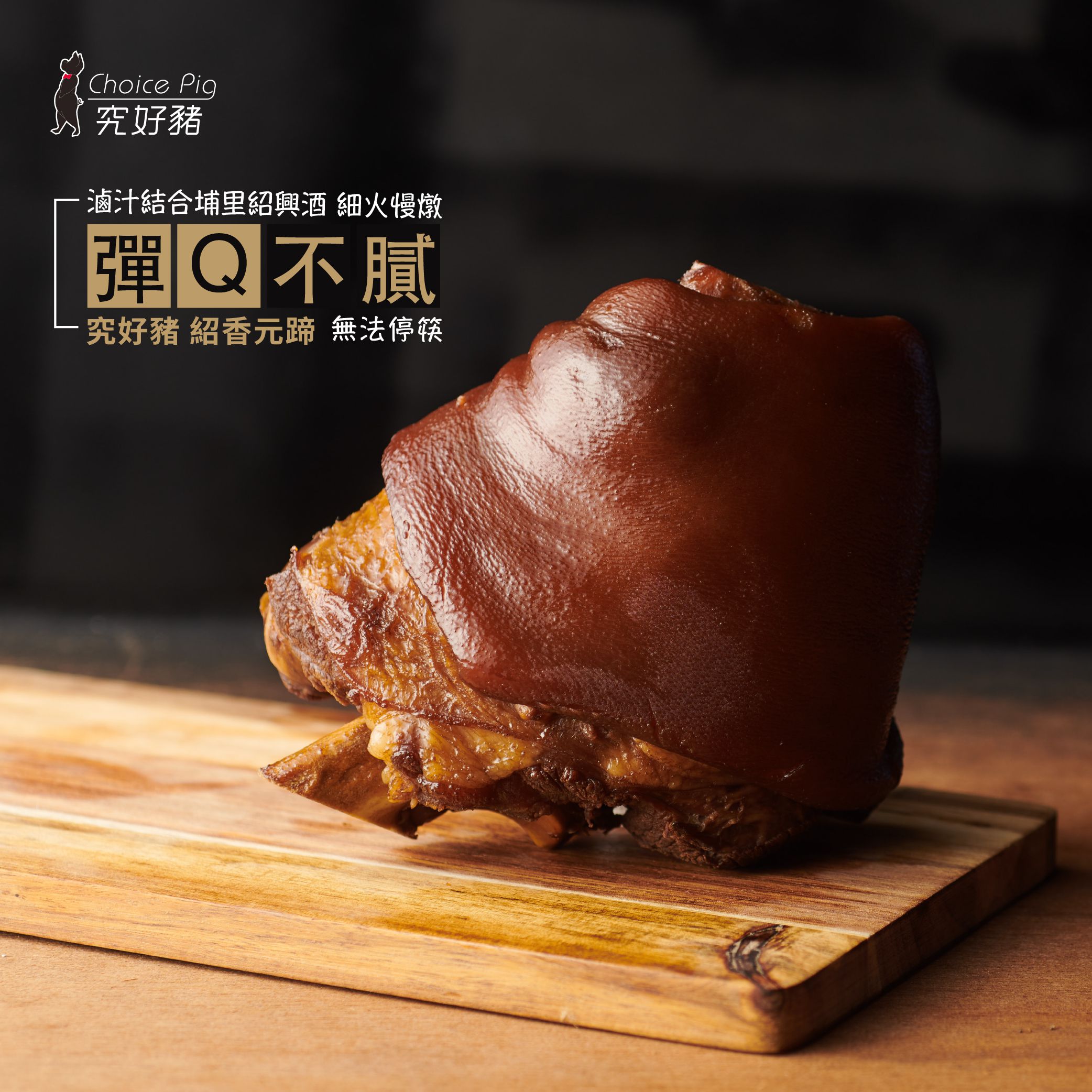 嚴選究好豬前腿部,肉質細緻鮮嫩,以紹興酒結合滷汁慢火細燉,富含膠質、香Q帶脆,淡淡酒香飄香,讓人忍不住多吃一塊