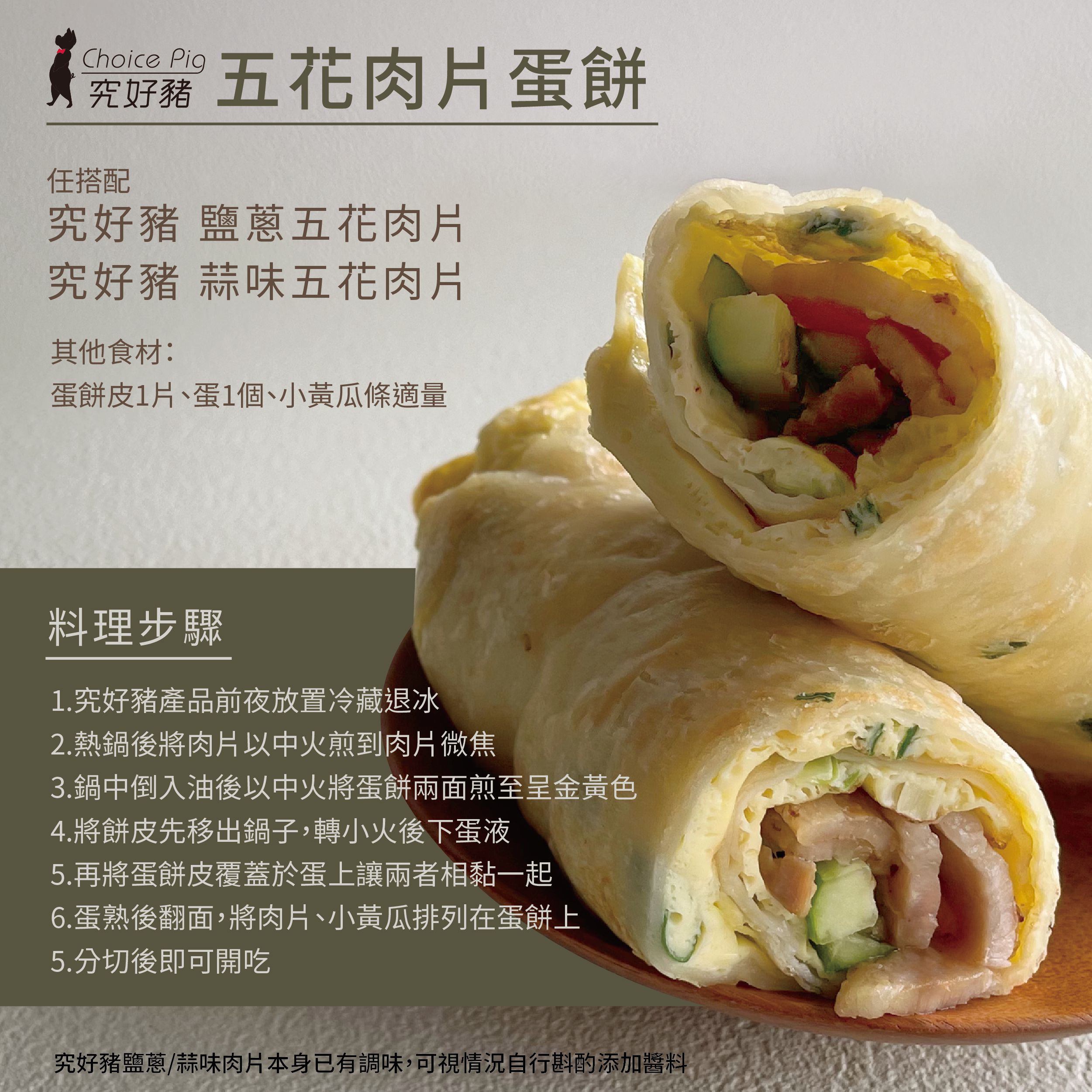 內容物:鹽蔥梅花肉片260g/包、鹽蔥五花肉片260g/包、蒜味梅花肉片260g/包、蒜味五花肉片260g/包+纖享豬排180g/包