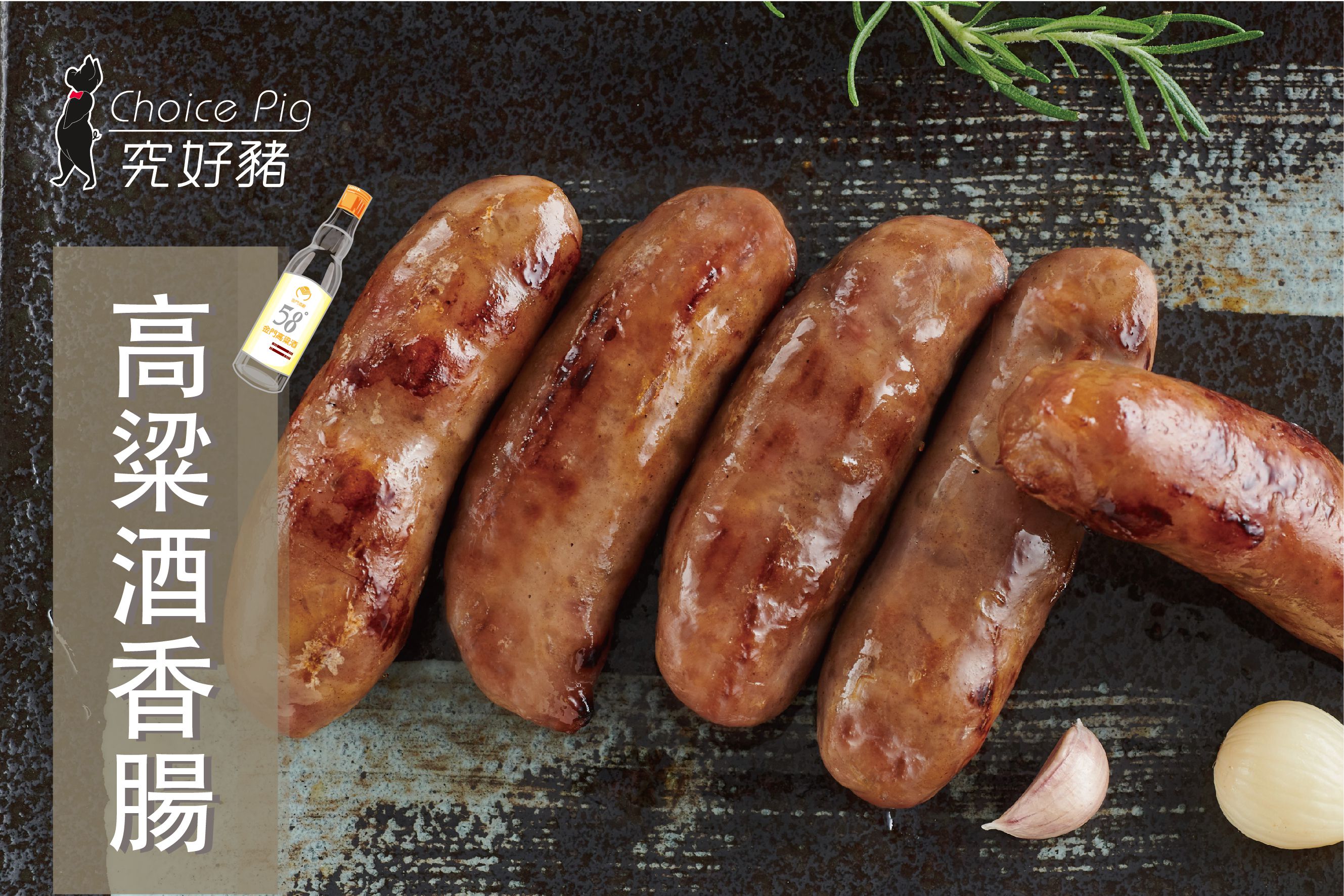 還有大人口味的高粱酒香腸,以肉丁取代絞肉,口感完勝一般香腸,完美肥瘦比例,充分吸收58度金門高粱酒,搭配天然豬腸衣,酒氣香醇,