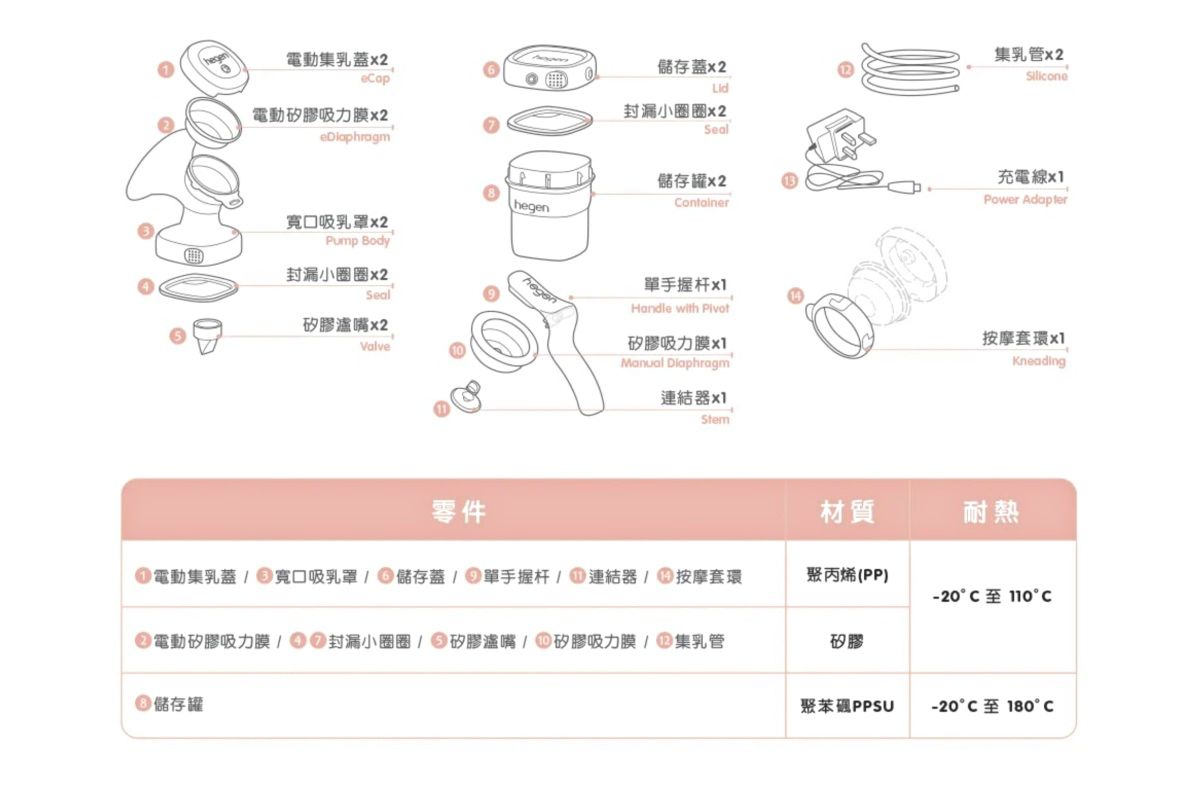 許多媽咪在接觸到【hegen 系列商品】會驚嘆其貼心的細節設計。hegen的創辦人 Yvon 也是一位母親,育有4個小孩,擁有長達10年的哺乳經驗,創辦人從母親的角度,研發出 ✔擠奶 ✔儲奶 ✔餵奶 ✔儲物『一體化多功能哺育方案』,只要替換上蓋,就能簡化哺乳媽咪們繁複配件的煩腦!這是hegen舒芙蕾多功能雙邊電動擠乳器的優惠組合,也有附贈慢速奶嘴、儲存蓋,讓媽咪實現一體化哺育唷!(媽咪可加購「奶瓶環蓋組,奶嘴」就能擠奶後直接瓶餵寶貝囉!)