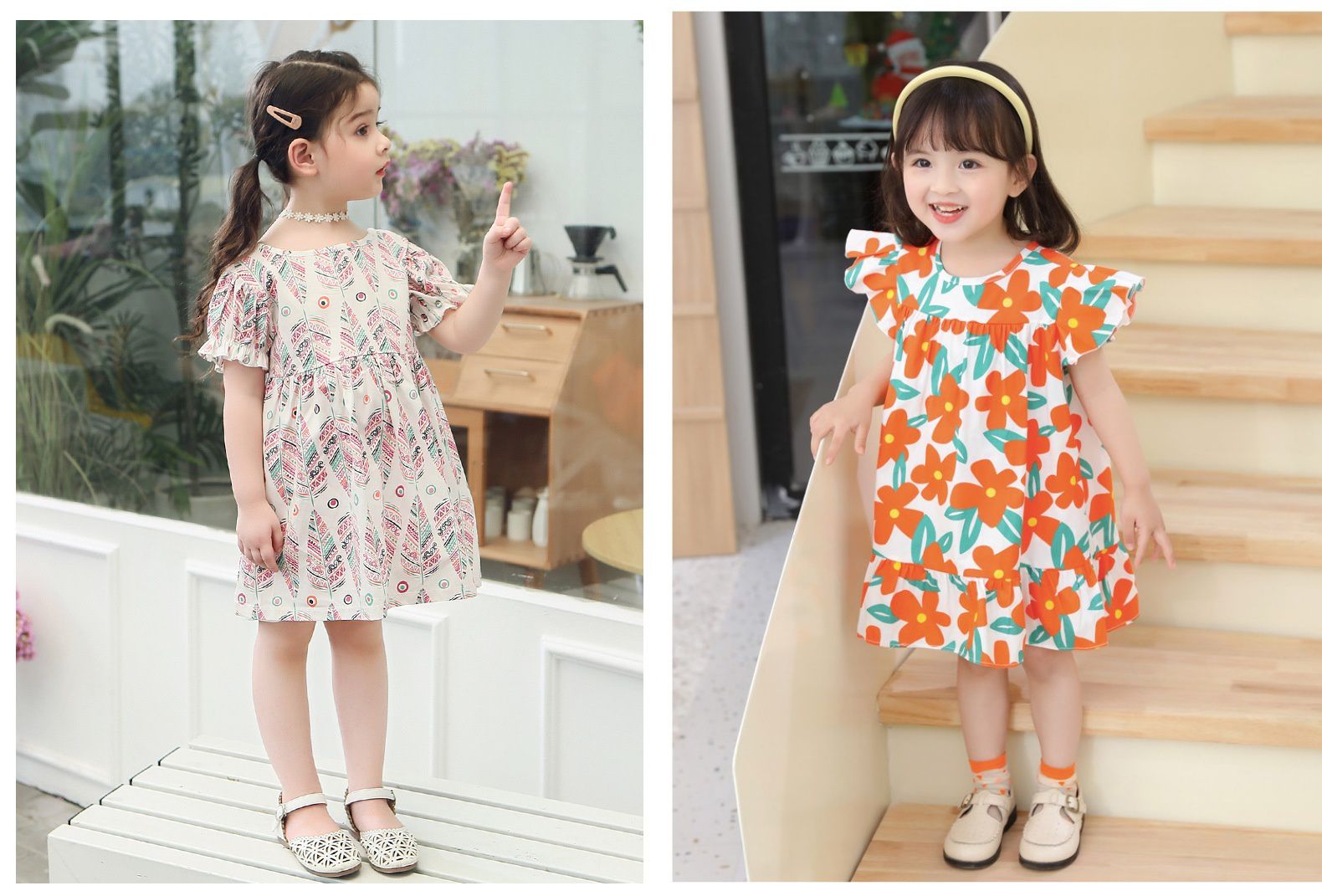 以滿版柔和色彩搭配花朵、水果圖樣,加上復古感寬領設計,襯托女寶的優雅可愛,袖口的抓皺縮邊,讓整體穿上就像小公主一樣,寶貝穿得開心又舒適透氣~ 加上台灣天氣一熱真的就是悶悶的,衣服必須要透氣舒適才穿得住啊!