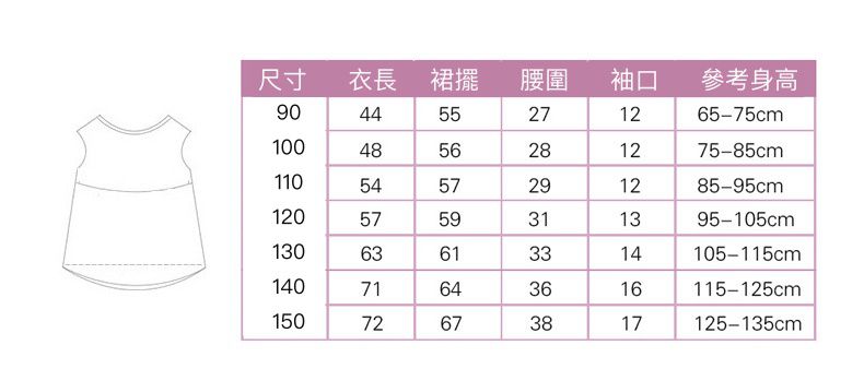 附上尺寸表給媽媽參考看看哦,版型偏小,建議稍微選大一碼即可。