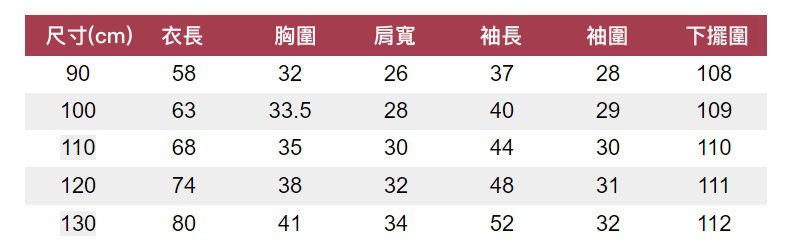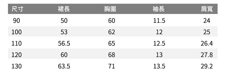 尺寸表提供媽咪參考