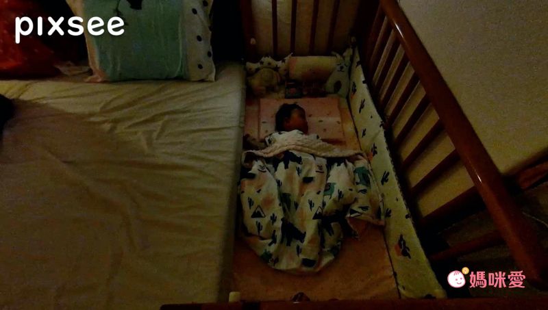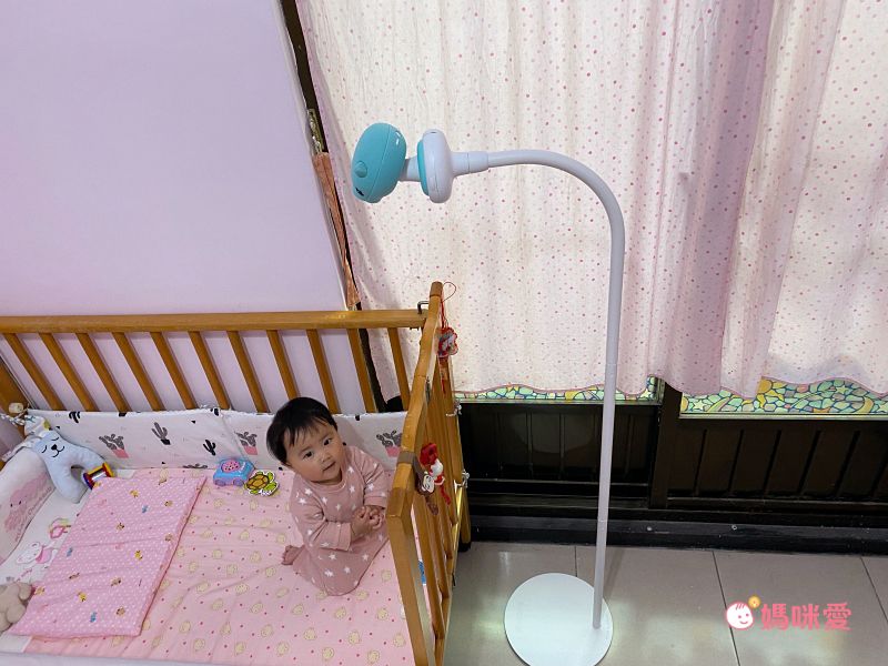 Lina寶寶準備睡覺前,挪到房間使用支架俯視嬰兒床!