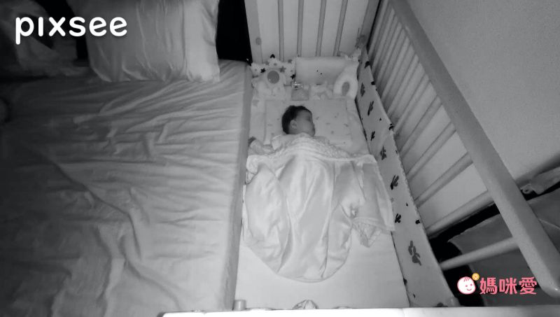 Lina寶寶睡覺時,小佩媽習慣開一盞小燈,即使只有微微的燈光,在一般模式下都非常清楚。若覺得太暗,也可調整成紅外線夜視模式!