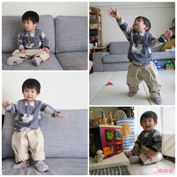 後方鬆緊帶設計,穿脫真的很方便,現在媽咪幫阿咘穿,之後就讓他自己練習看看囉