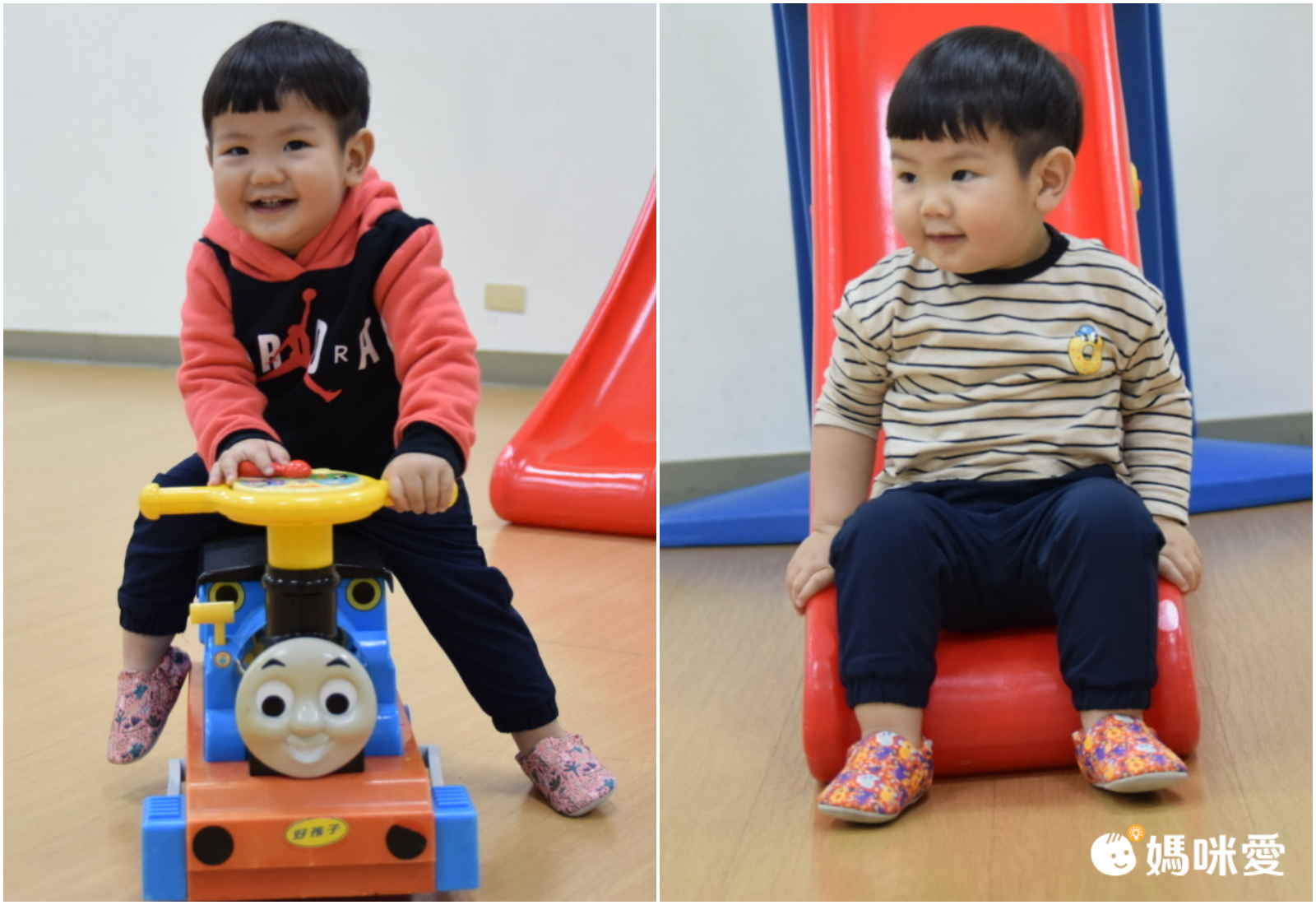 看阿咘完全不排斥,爬上爬下,一下玩溜滑梯,一下開車車,一下推車車,就知道真的很舒服欸