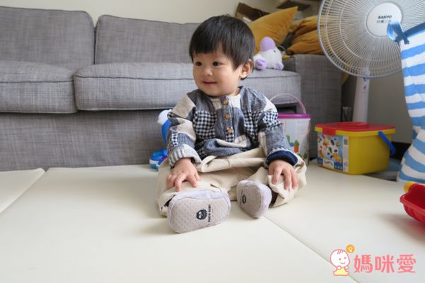 (提醒媽咪:室內鞋如果要穿出戶外,建議在住家附近活動就好囉~雖然柔軟的室內鞋很舒適,但是碰到地上的玻璃碎片或小石塊可能會弄傷寶寶的腳,加上鞋底的麂皮會弄髒,還是換一雙室外鞋比較保險。)